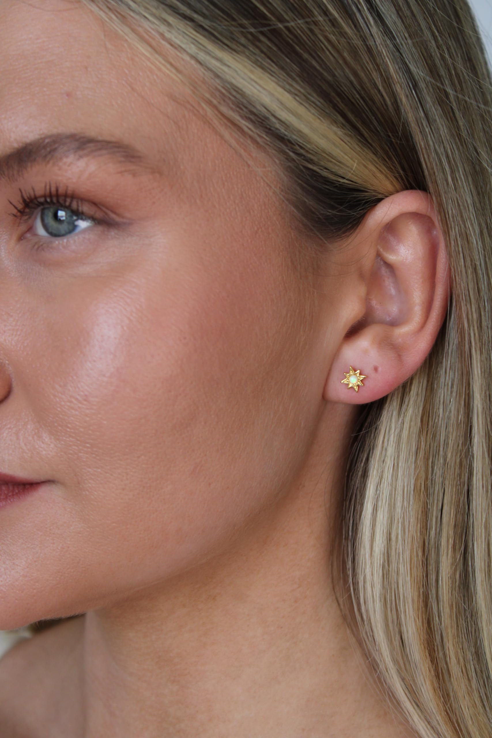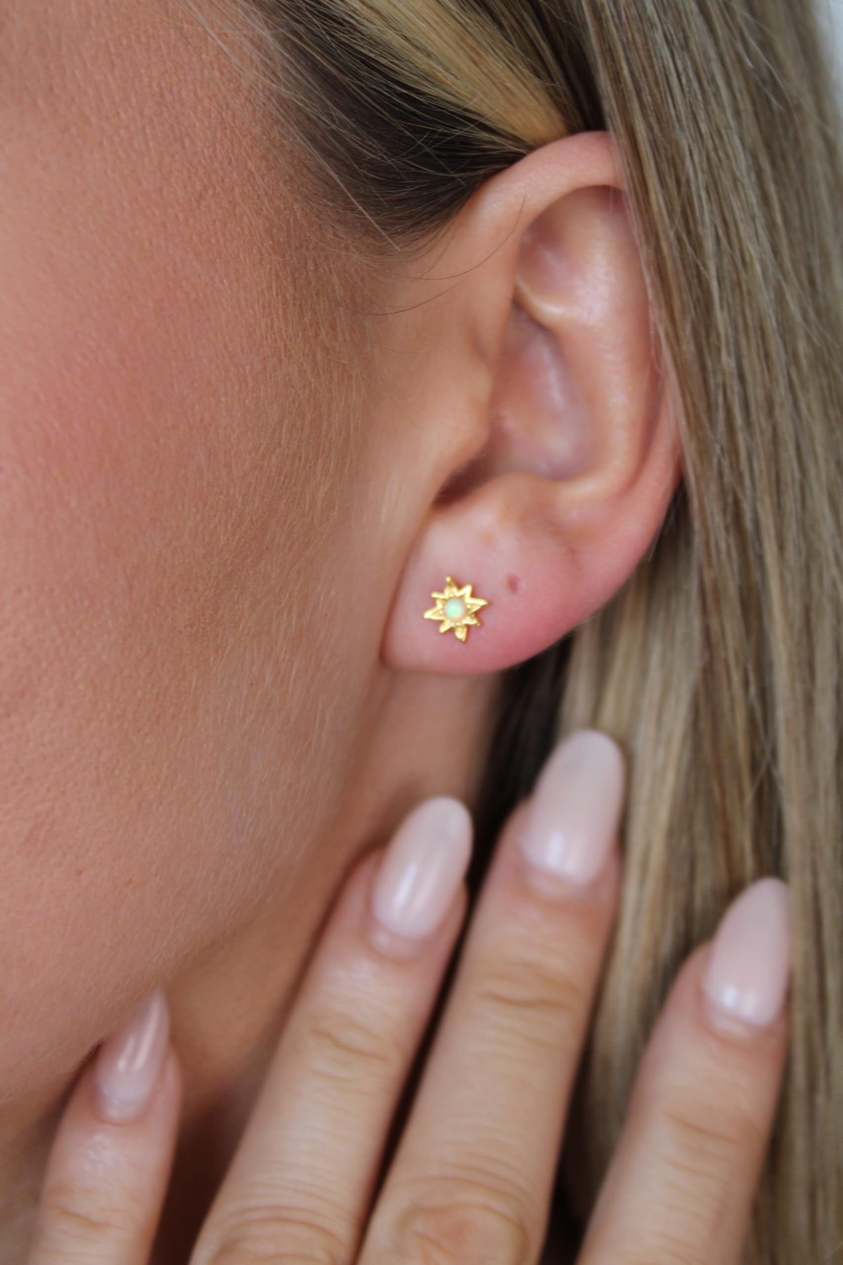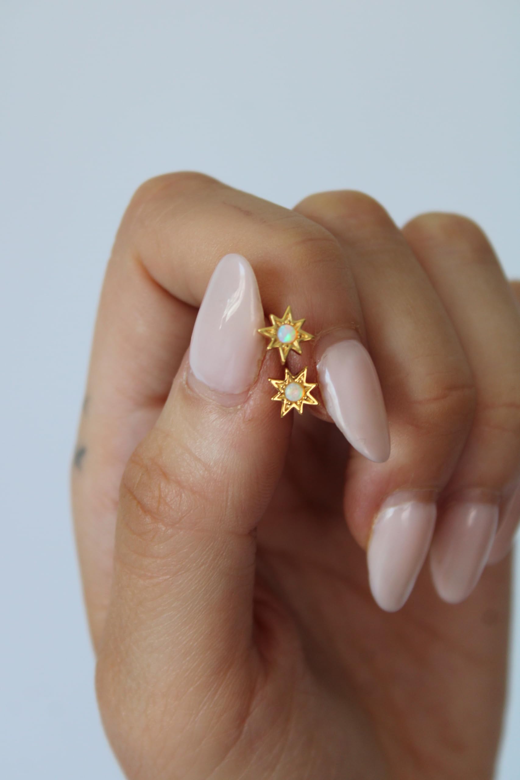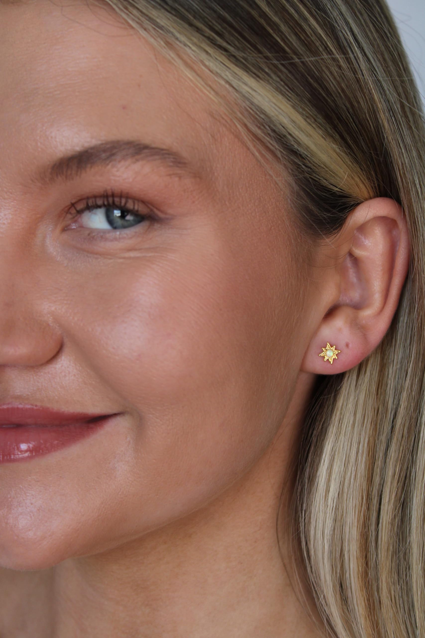 Celestial Star Opal Stud Earrings – 18K Gold Plated CZ & Simulated Opal