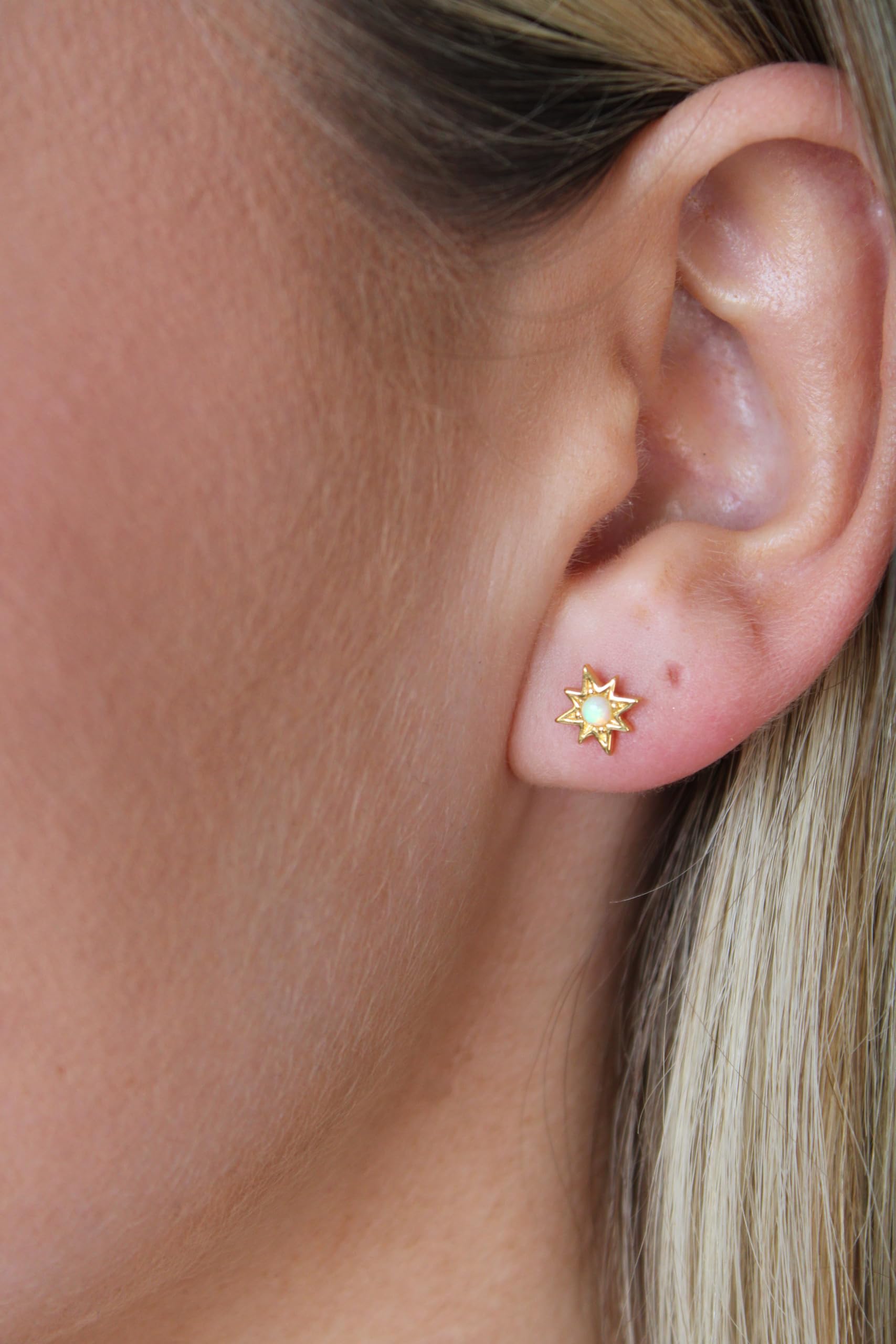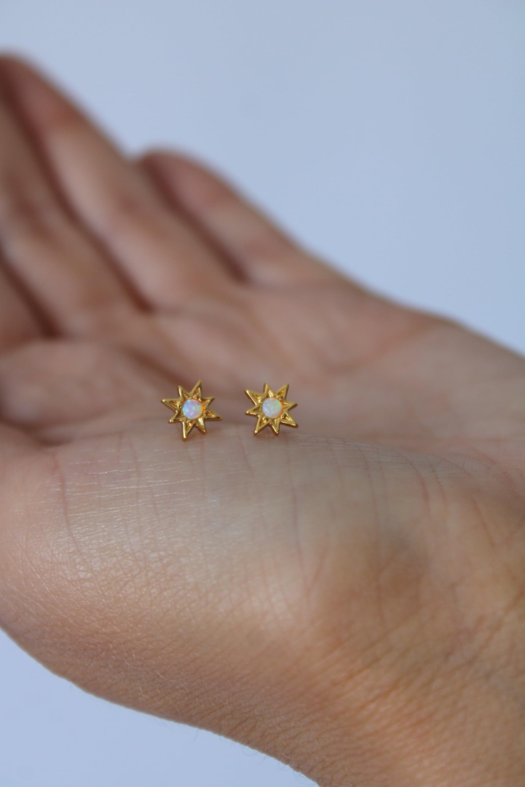 celestial star earrings gold opal stud earrings 18k gold plated cz simulated opal hypoallergenic push back earrings chunky gold earrings women’s jewelry gift