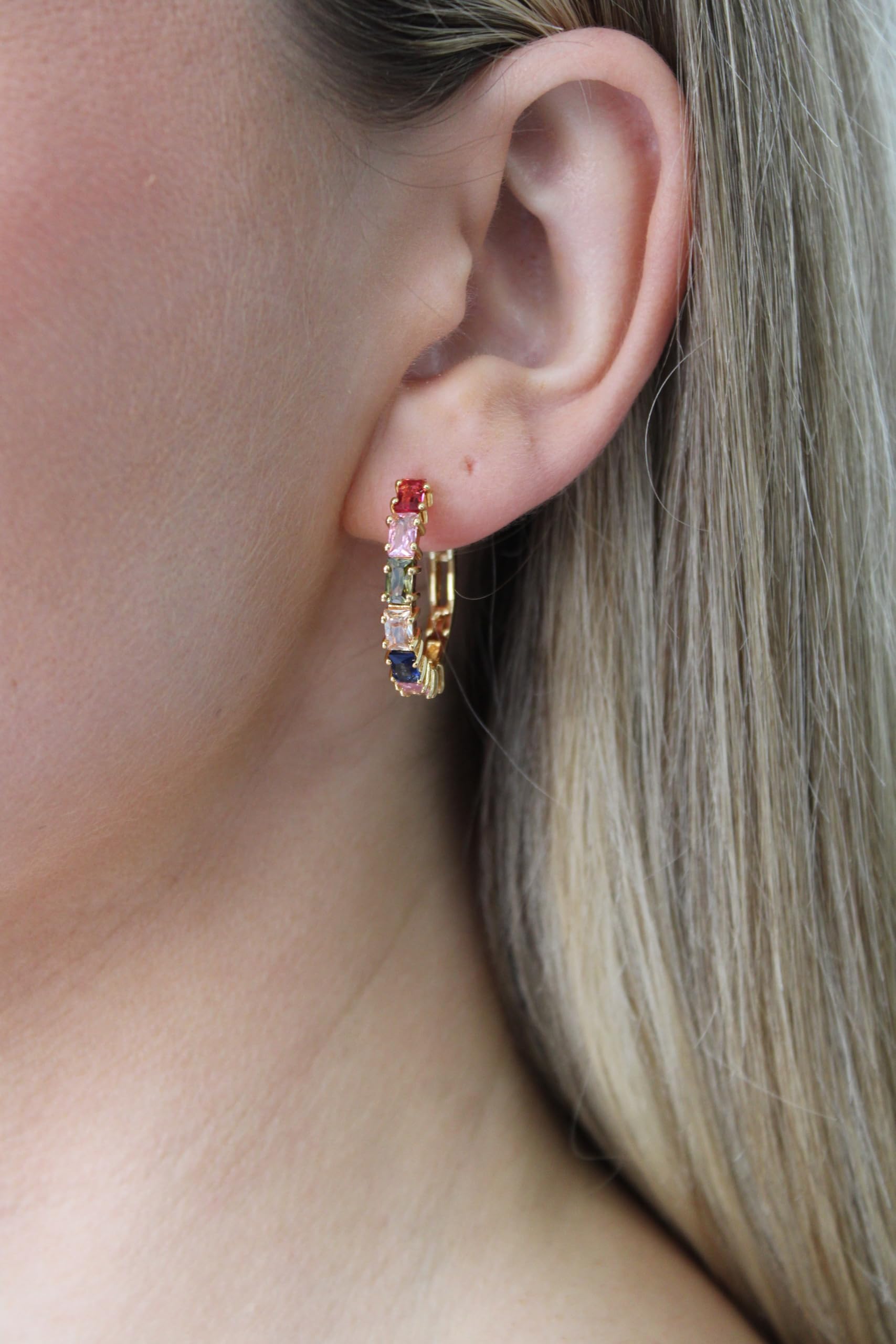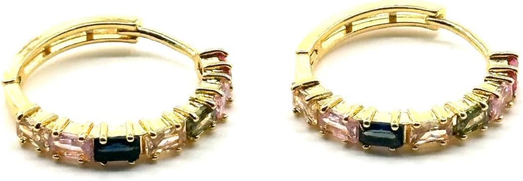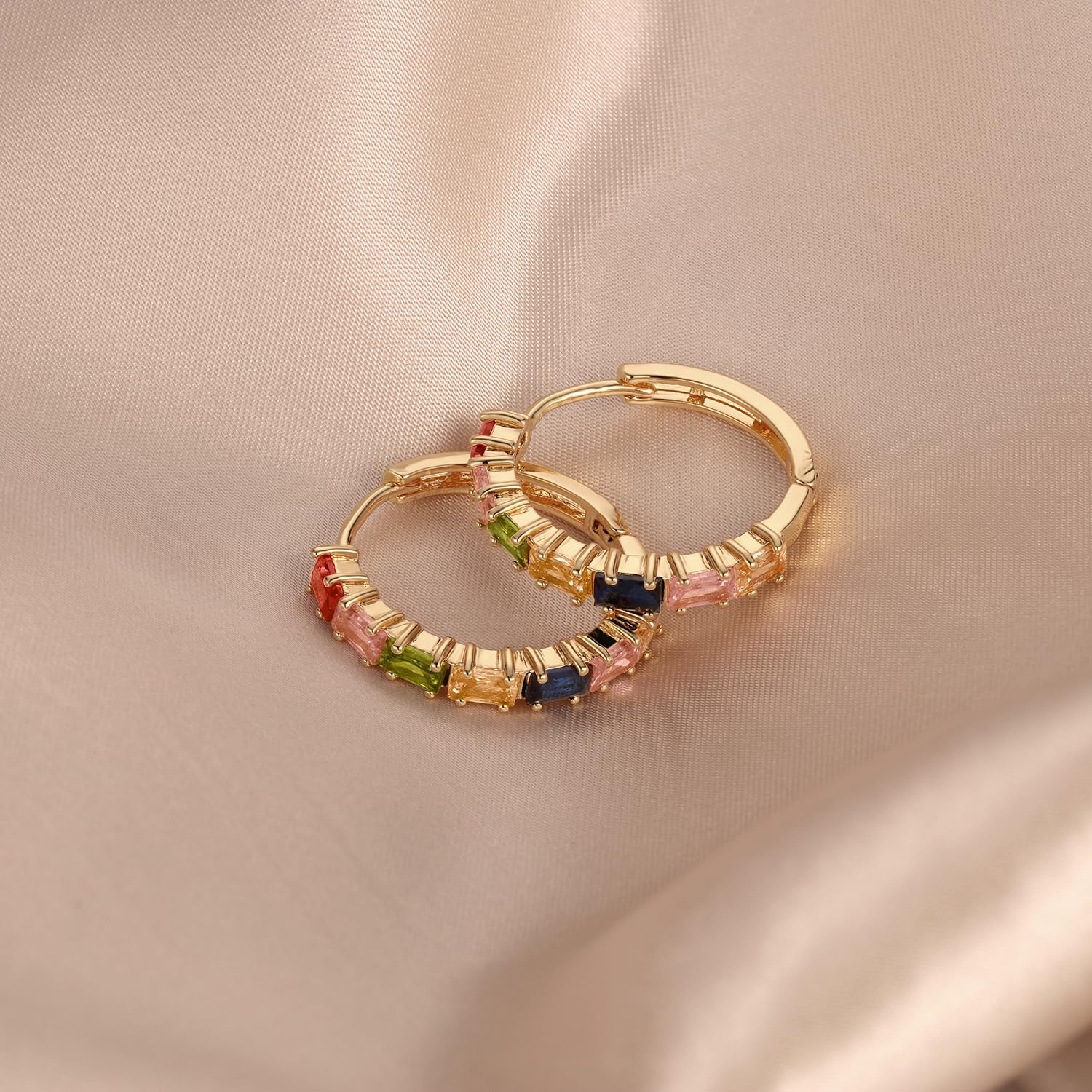 Colorful Hoop Earrings – 18K Gold Plated Dainty Hoops with Multicolored Gemstones, Lightweight & Secure Clasp