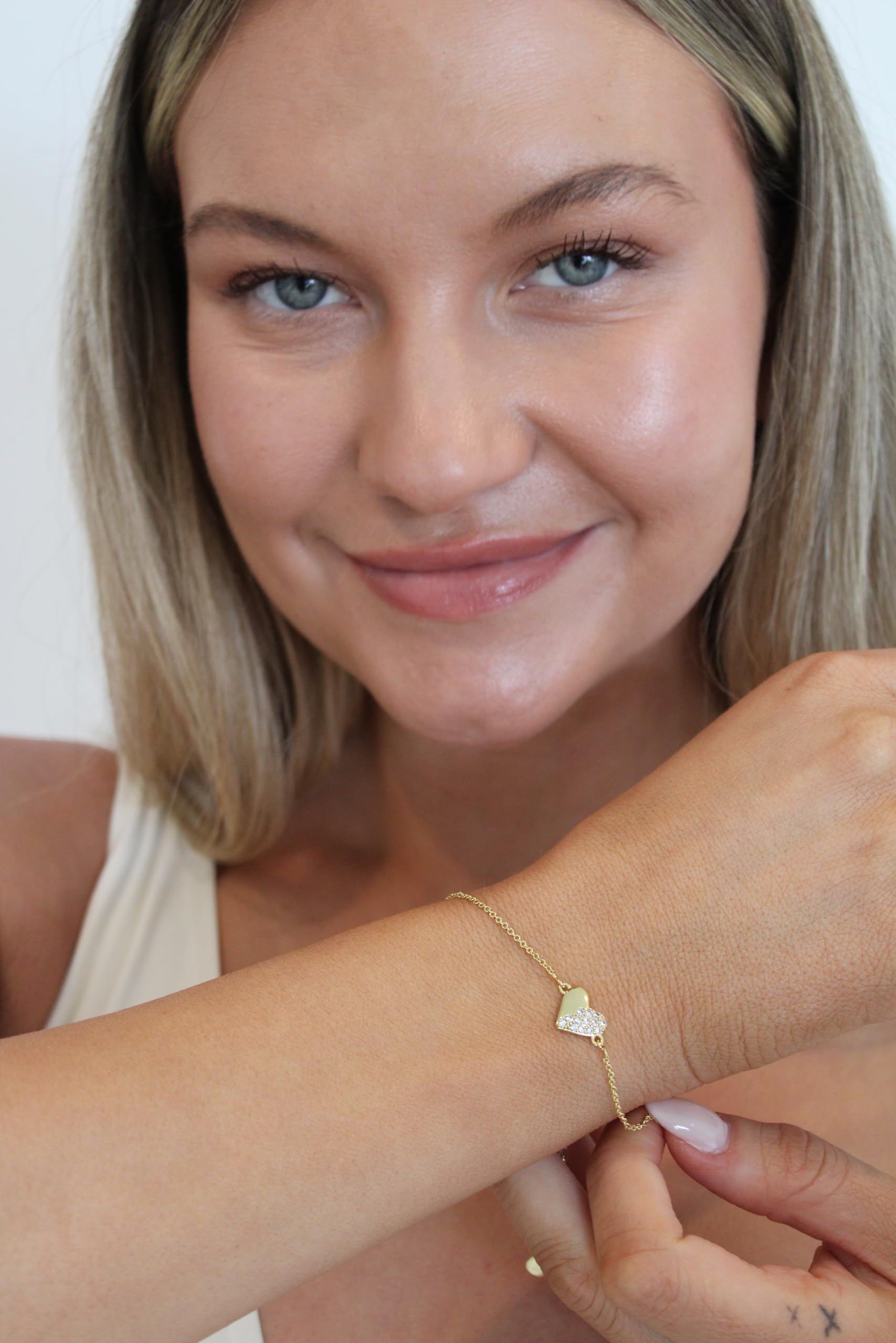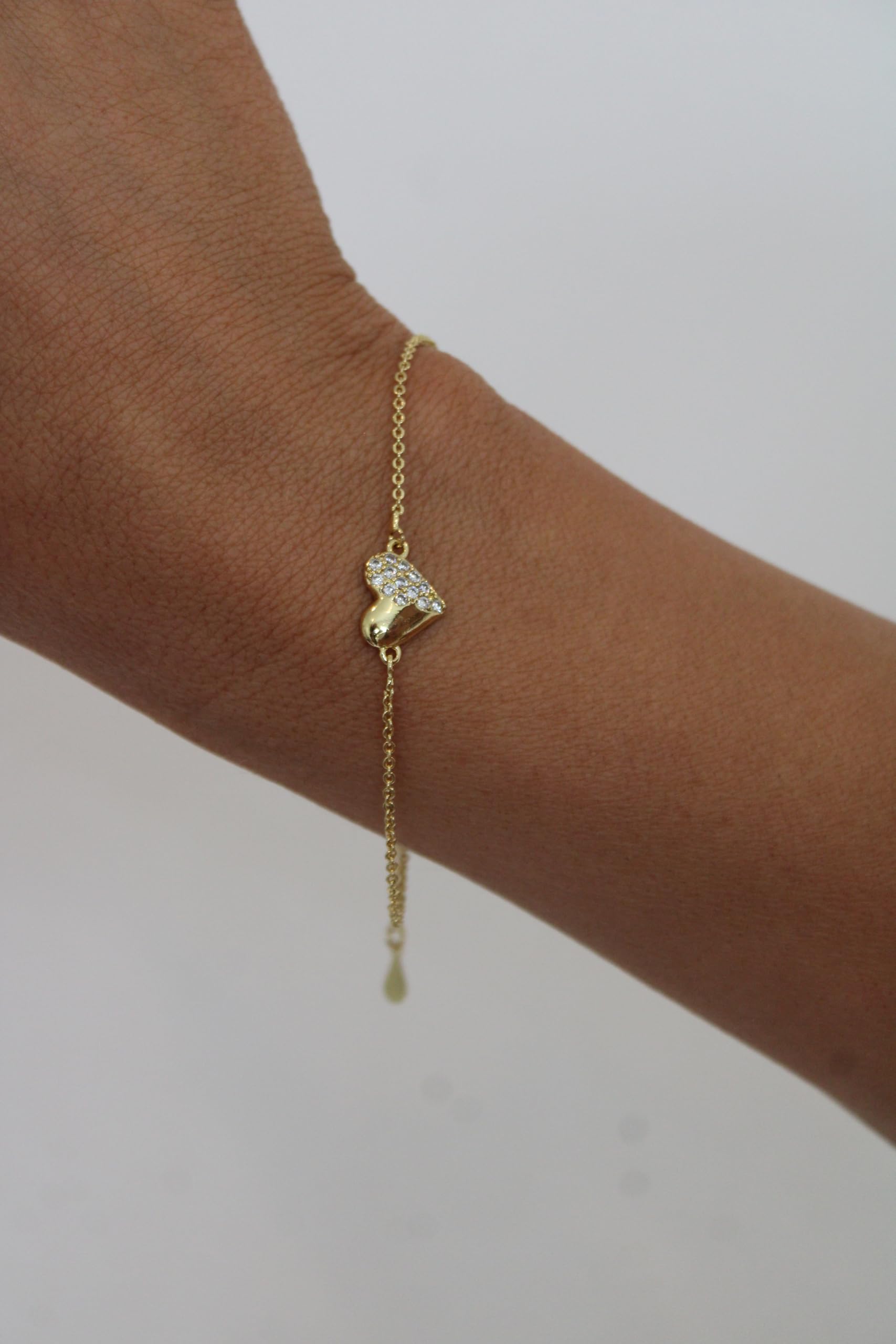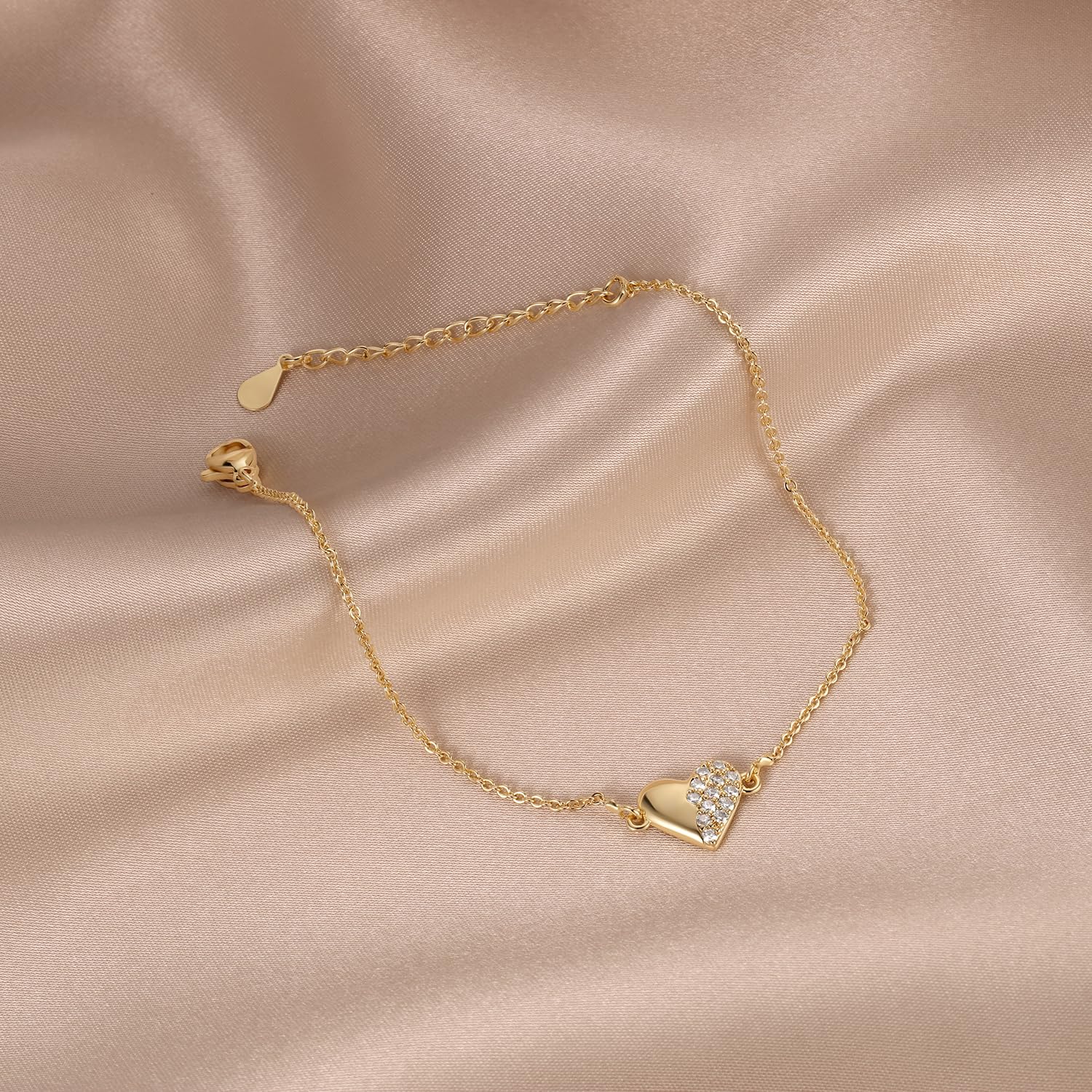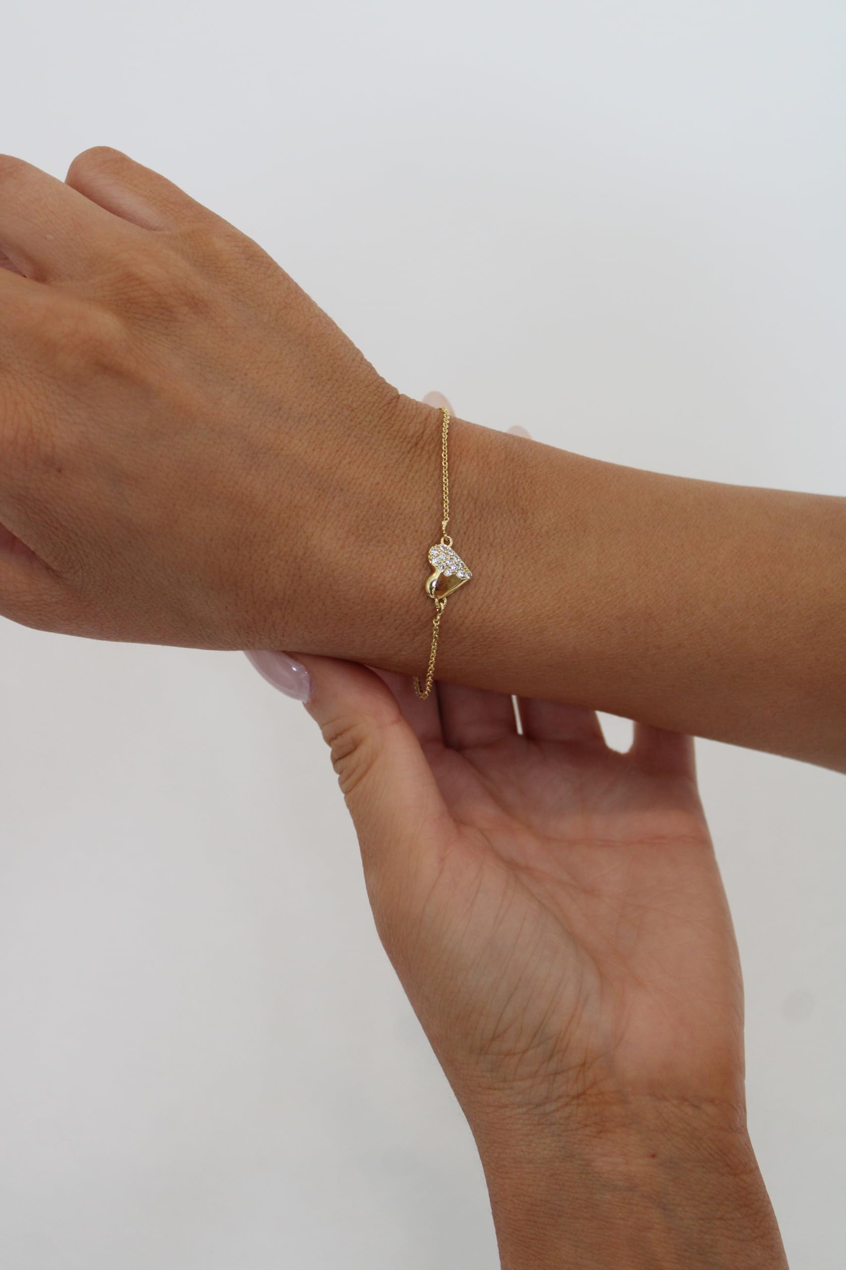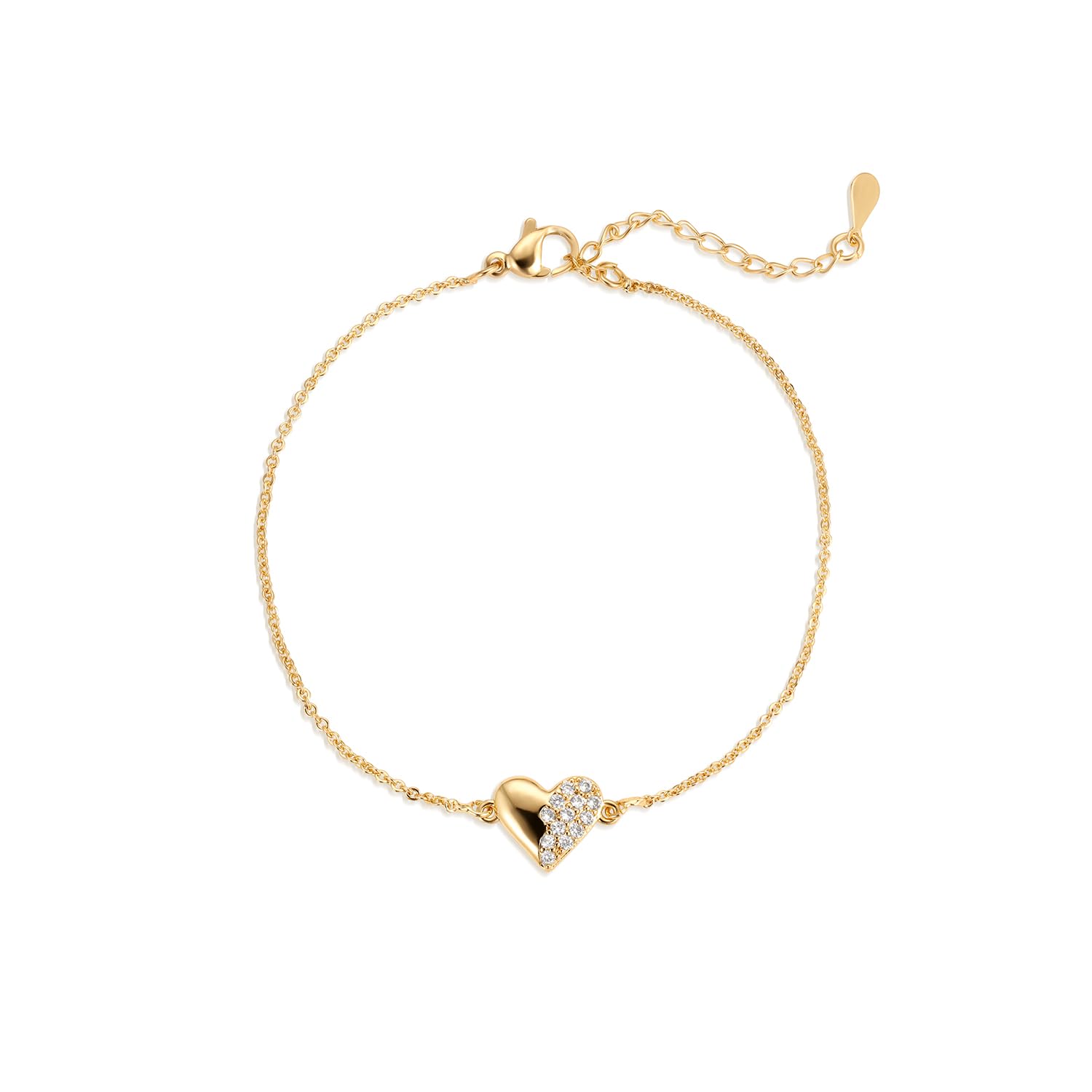 Dainty Heart Bracelet – 18K Gold Plated with CZ Accents & Lobster Clasp, Adjustable