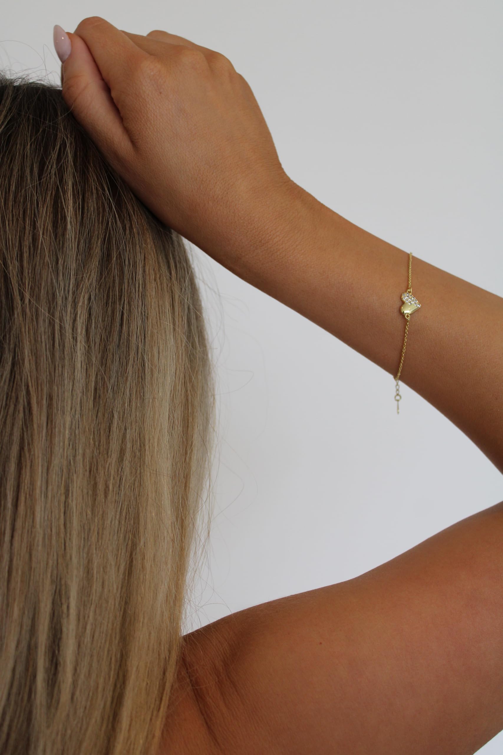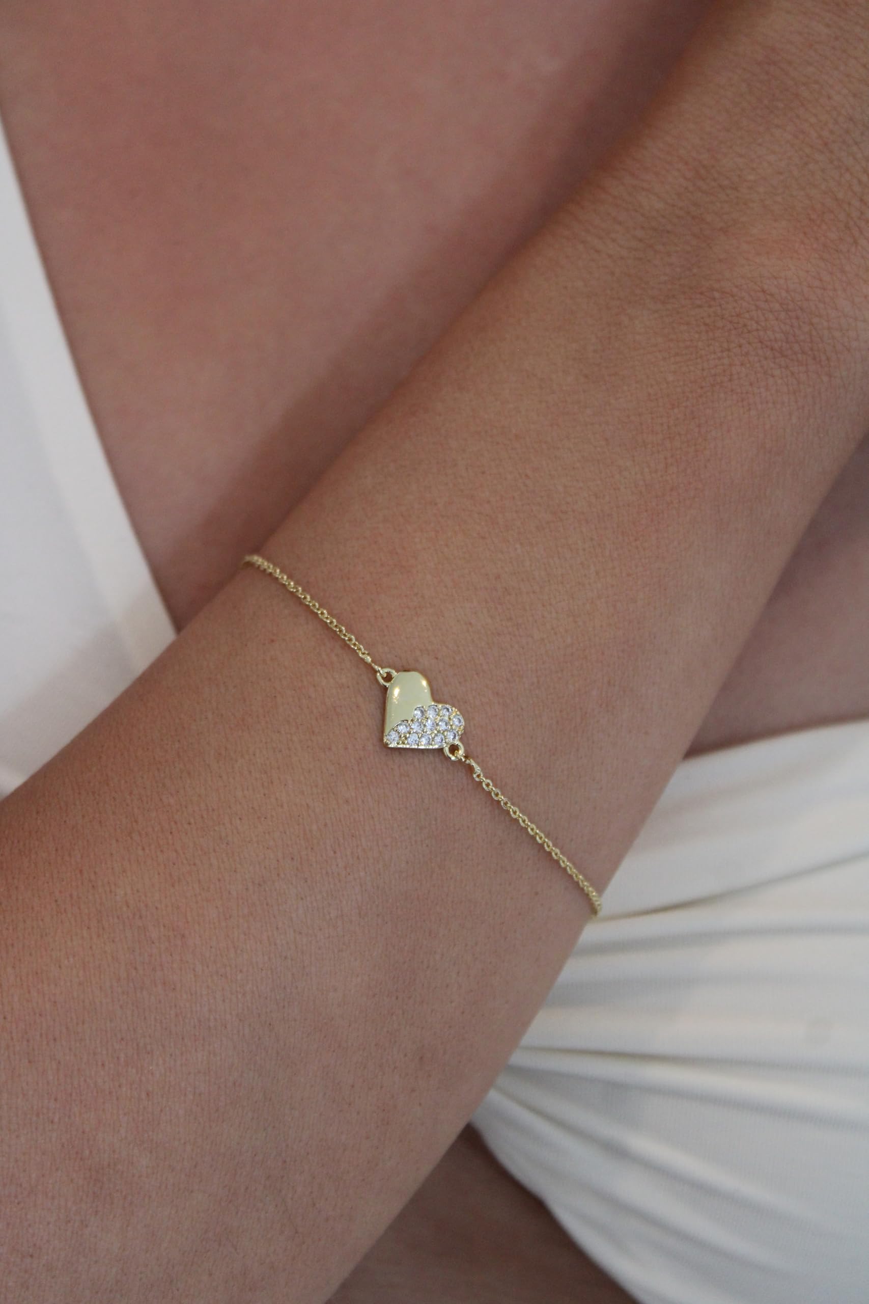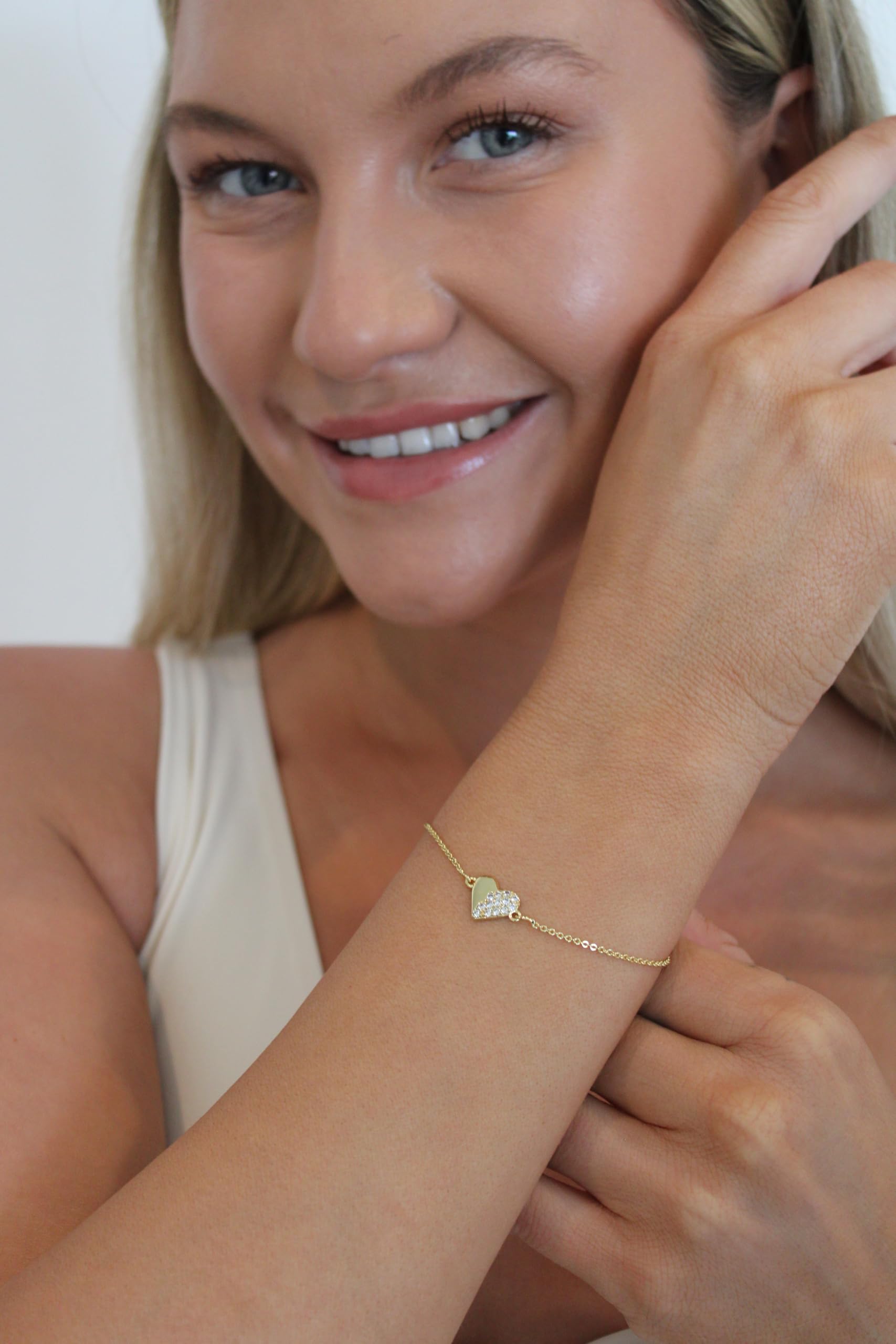 This dainty 18K gold-plated heart bracelet sparkles with delicate cubic zirconia accents, bringing a subtle yet sophisticated touch to your wrist. Crafted with a secure lobster clasp and adjustable length, it fits comfortably and pairs beautifully with both casual and formal looks. Lightweight and hypoallergenic, this bracelet offers lasting shine and style—perfect alone or stacked with your favorite pieces for a personalized statement.