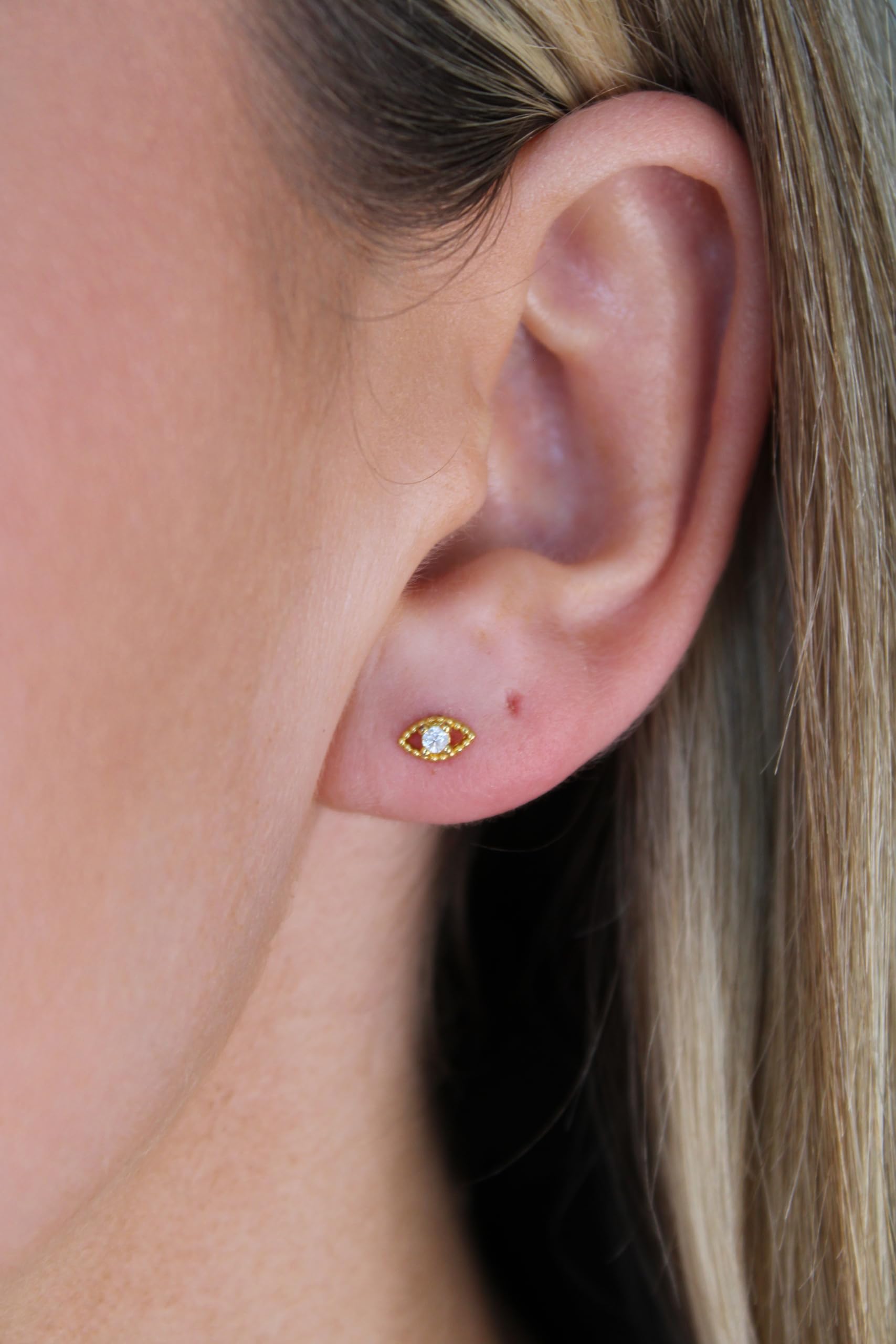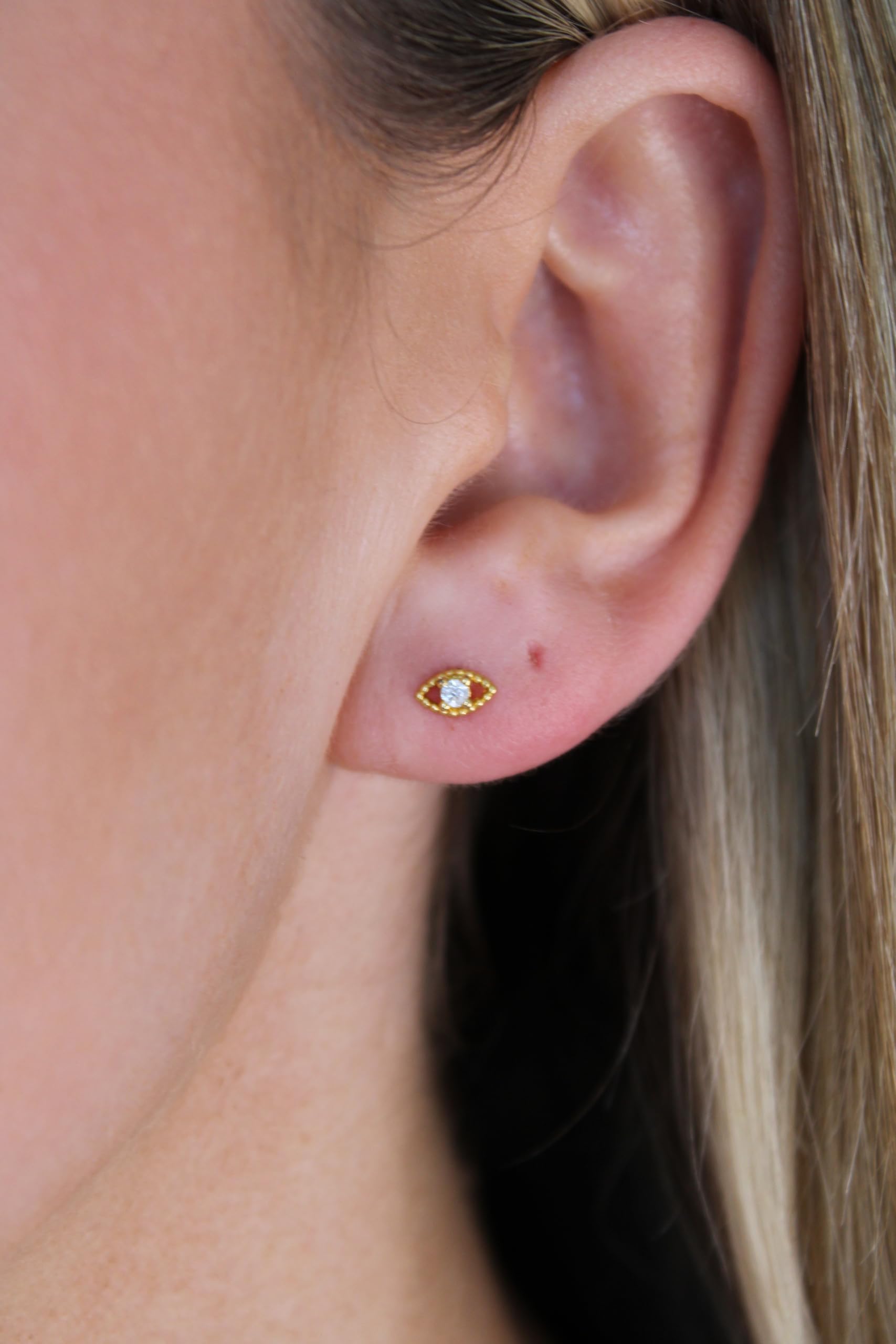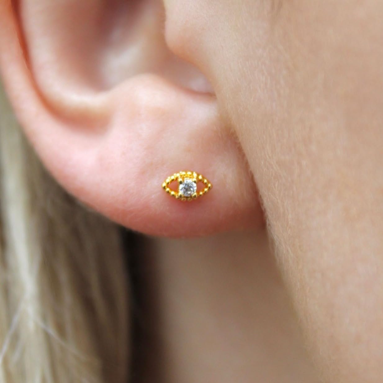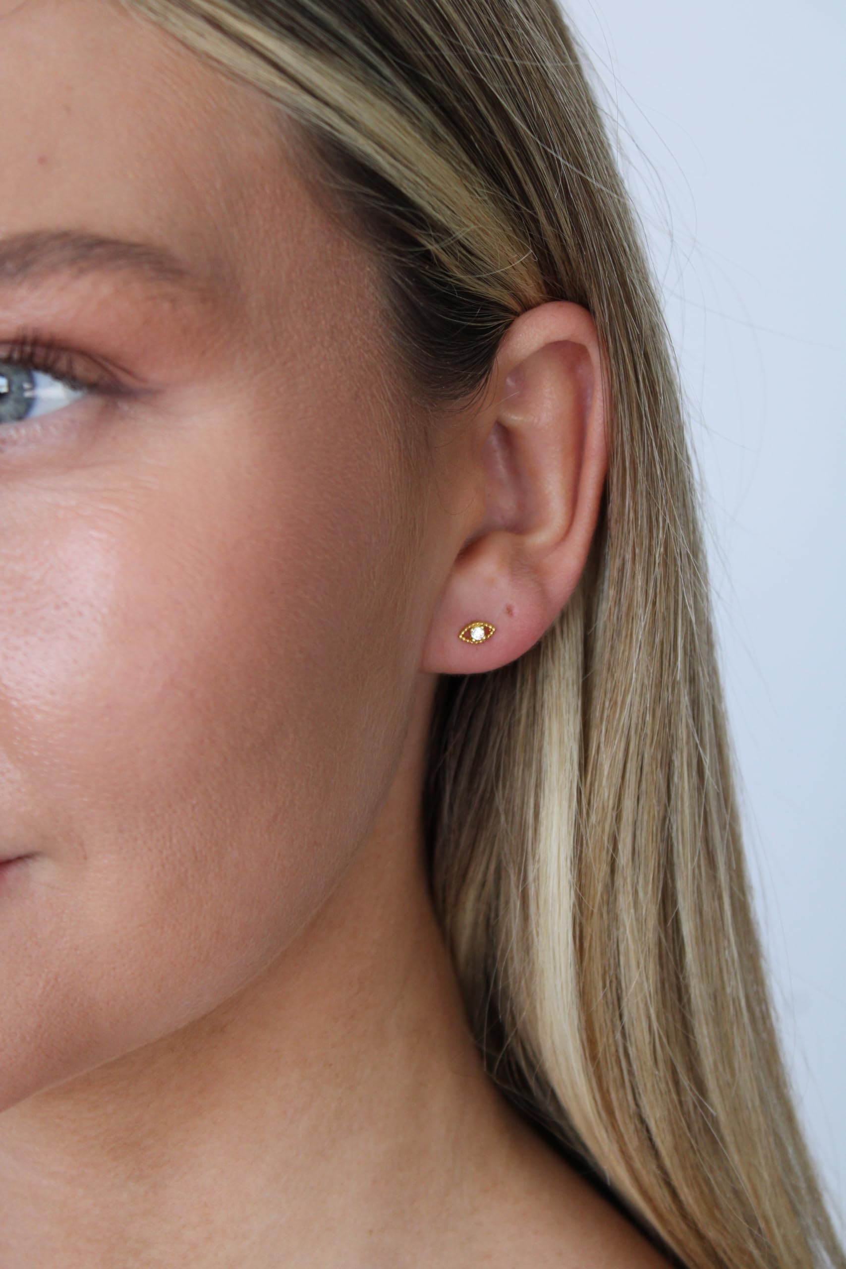 Evil Eye Stud Earrings – 18K Gold Plated Minimalist Studs with White Zircon, Dainty Hypoallergenic Protective Jewelry for Women by Malibu Sunday