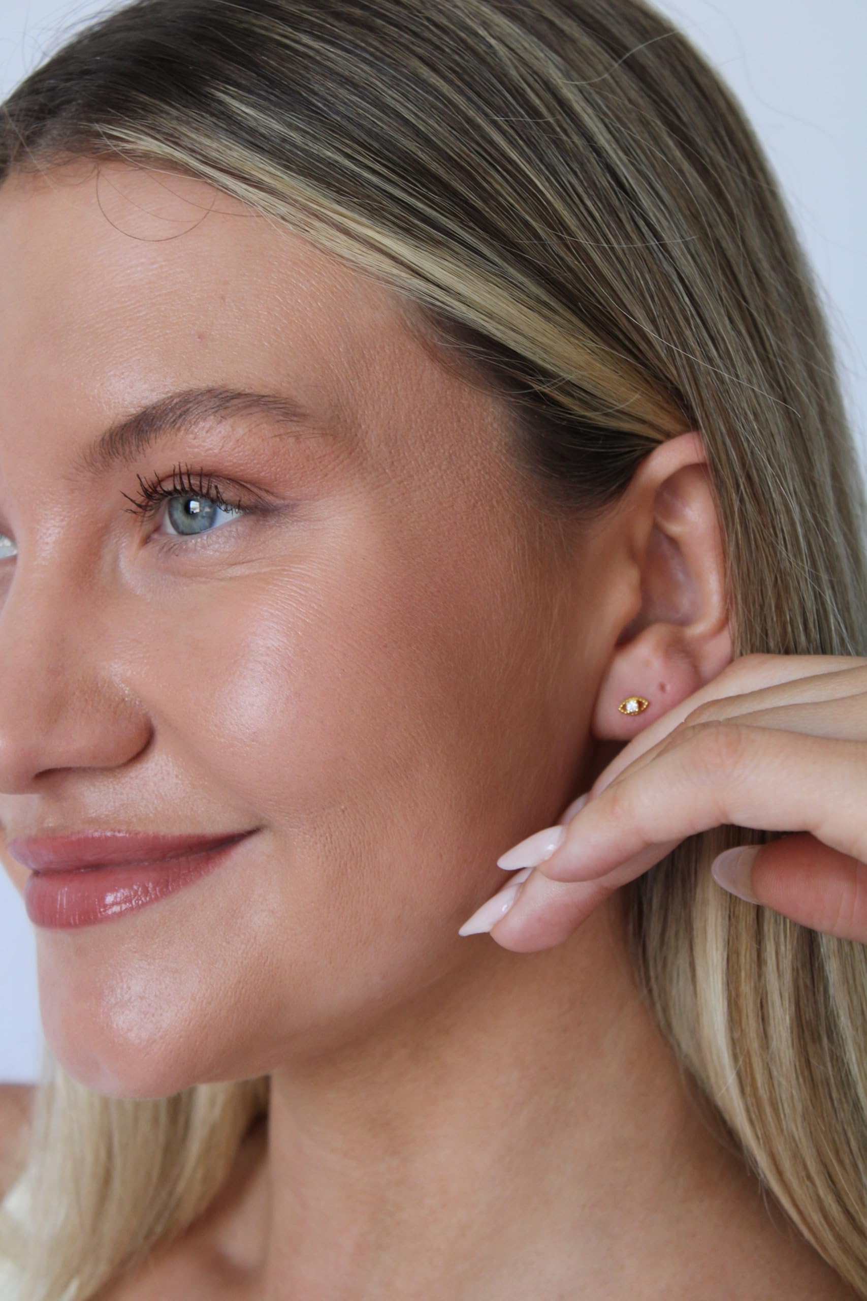 These dainty 18K gold-plated Evil Eye Stud Earrings combine timeless symbolism with subtle sparkle. Featuring shimmering white zircon stones, they offer a delicate yet powerful look rooted in the ancient belief of warding off negative energy. Lightweight and hypoallergenic, these studs are perfect for everyday wear and seamlessly elevate any outfit—from casual to chic. Designed by our all-female California team, they blend mindful intention with modern elegance.