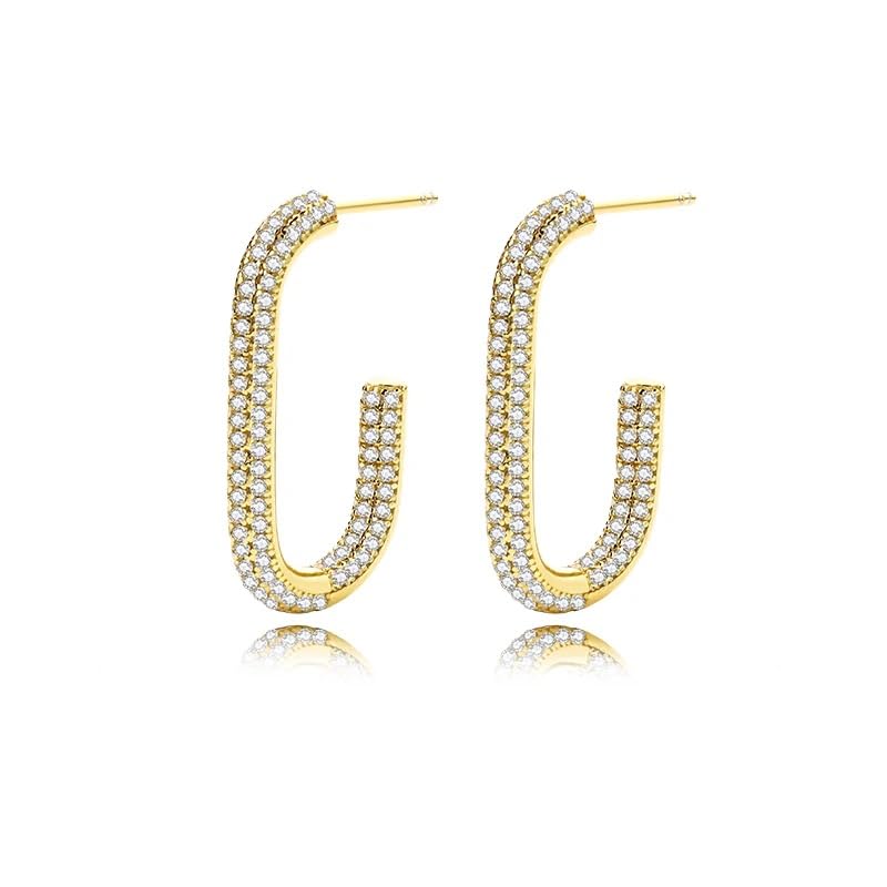 Squoval Hoop Earrings – 18K Gold Plated Sterling Silver with Zircon, Lightweight & Hypoallergenic