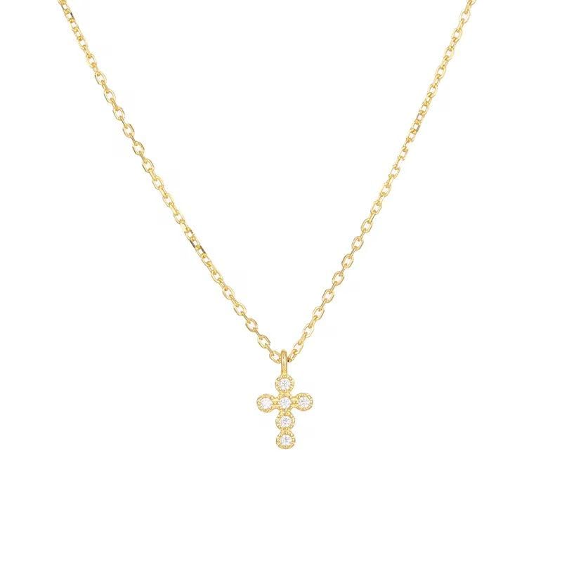Dainty Small Gold Cross Necklace – Yellow Gold Plated Mini Pendant for Women