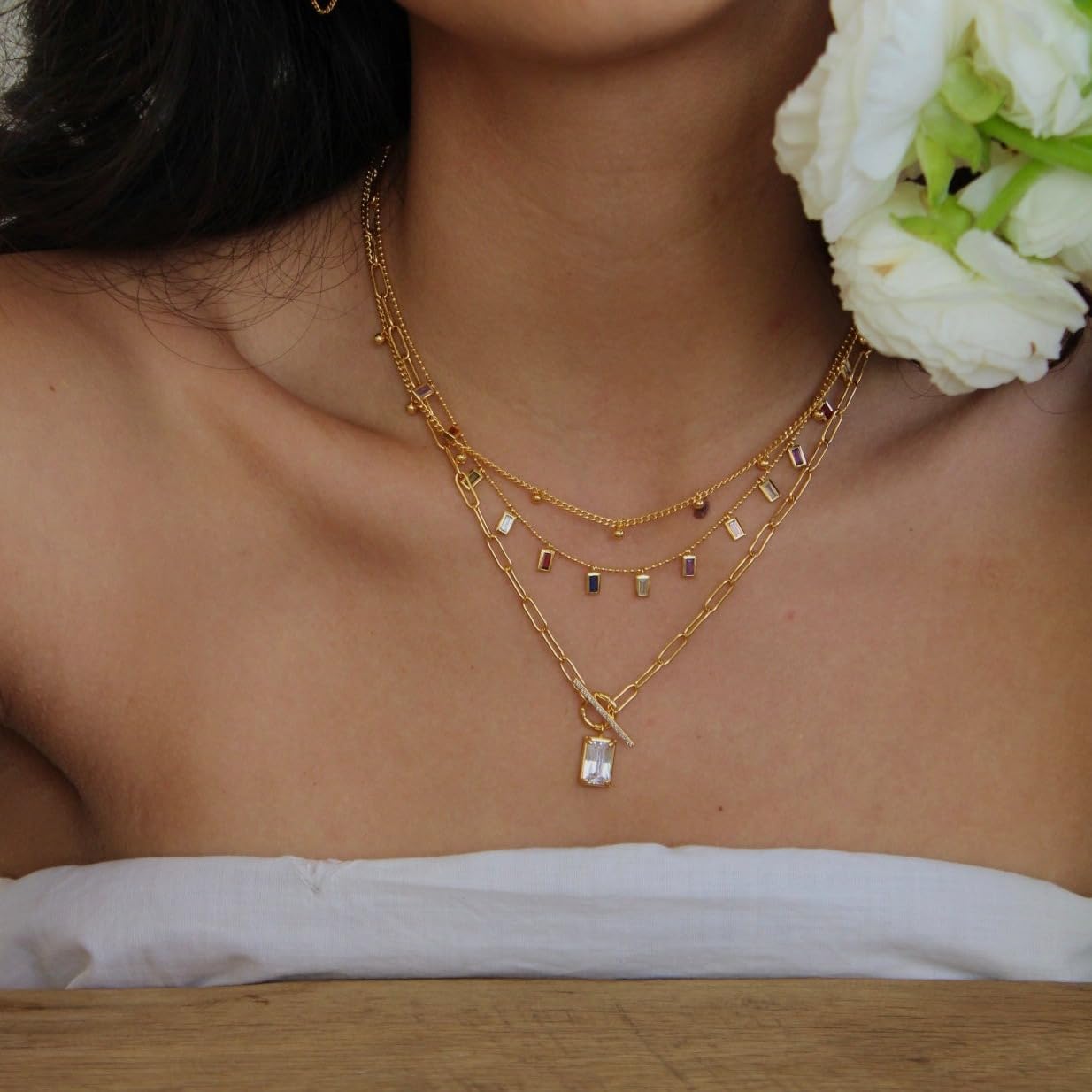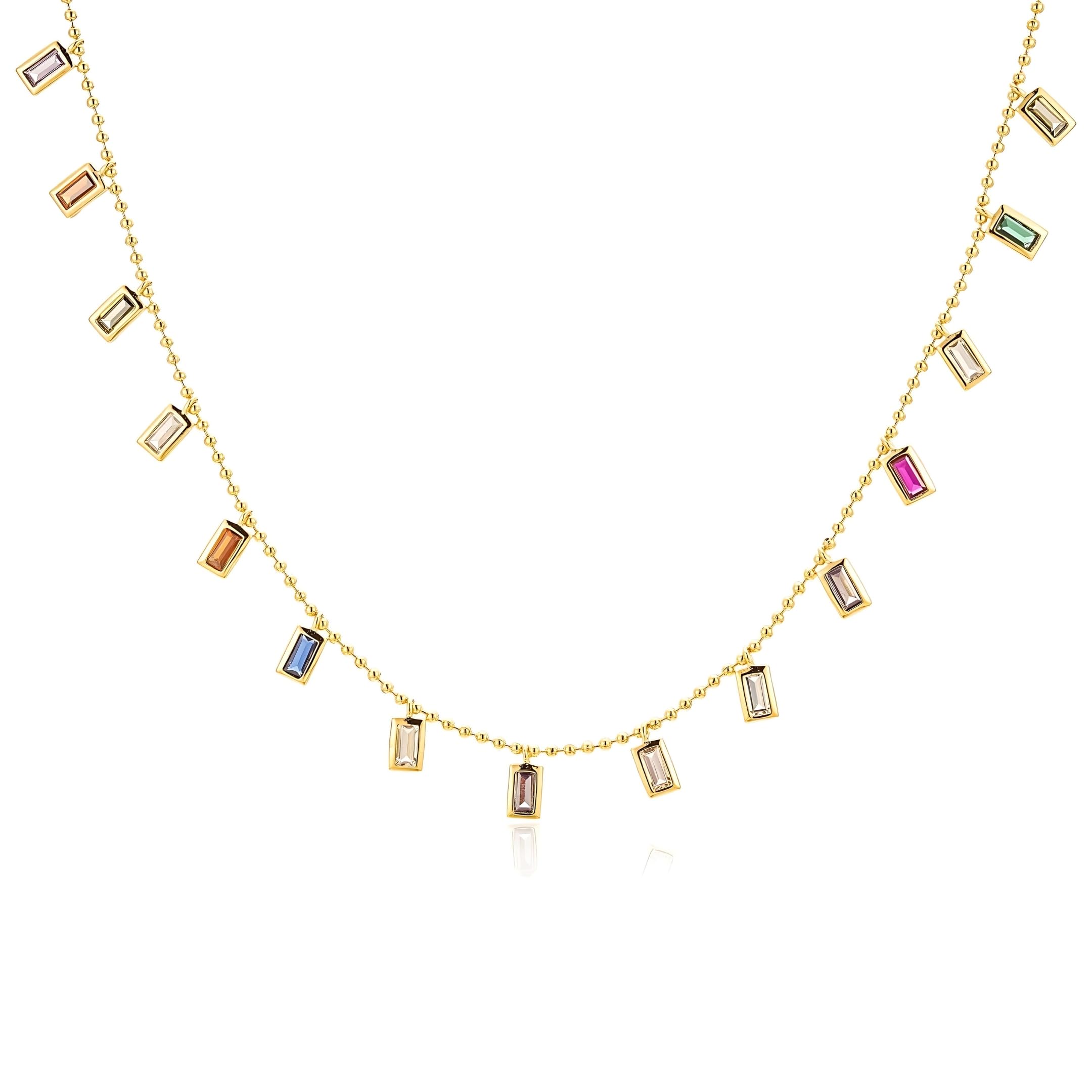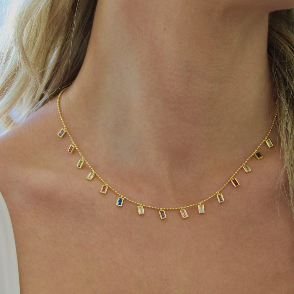 The Palisades Rainbow Zircon Necklace adds a cheerful, sophisticated accent to your everyday jewelry rotation. Set with a series of tiny multicolor zircon stones, this dainty necklace delivers subtle sparkle and personality—perfect for layering or wearing solo.