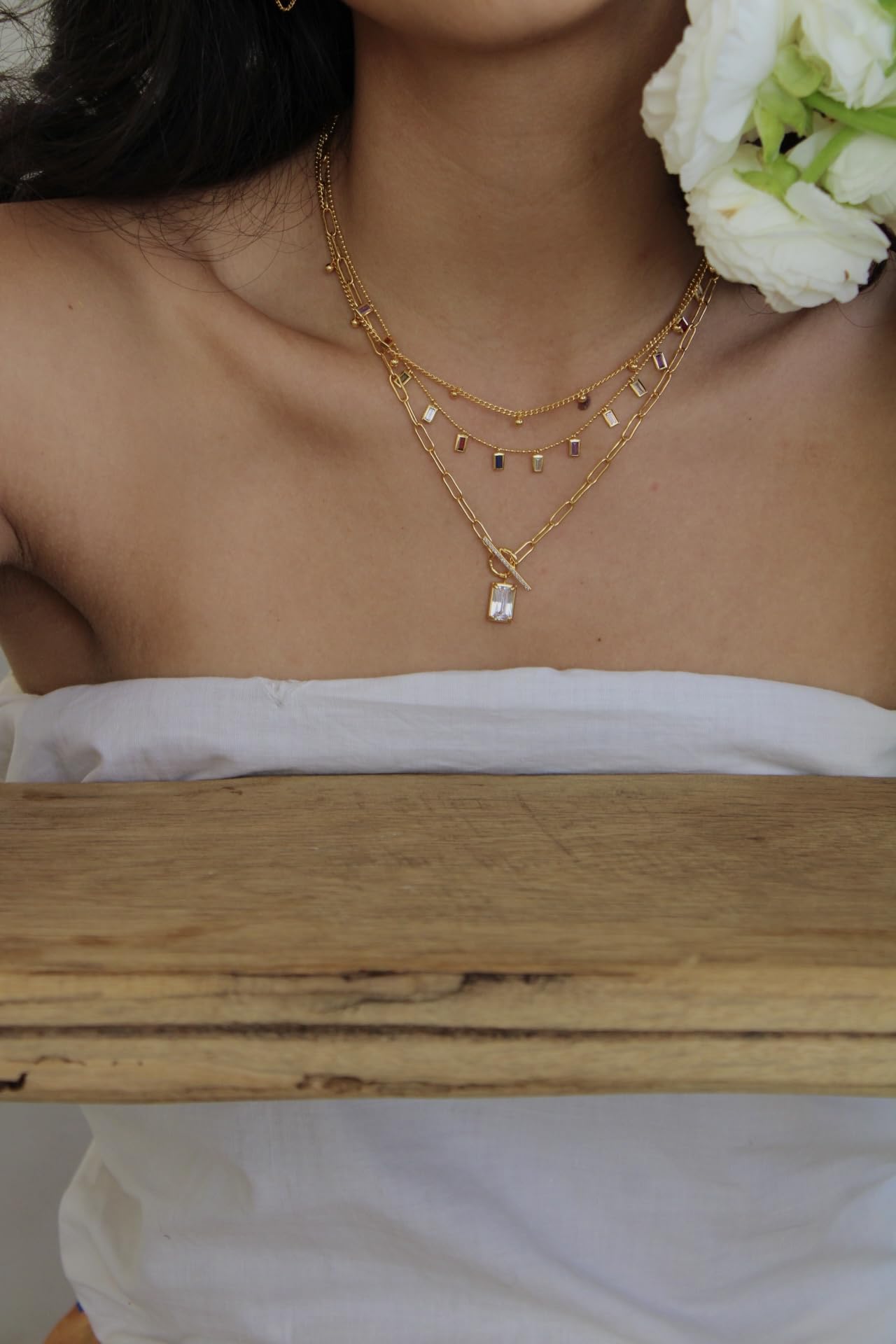 Palisades Rainbow Zircon Necklace – 18K Gold Plated, Adjustable Dainty Pendant