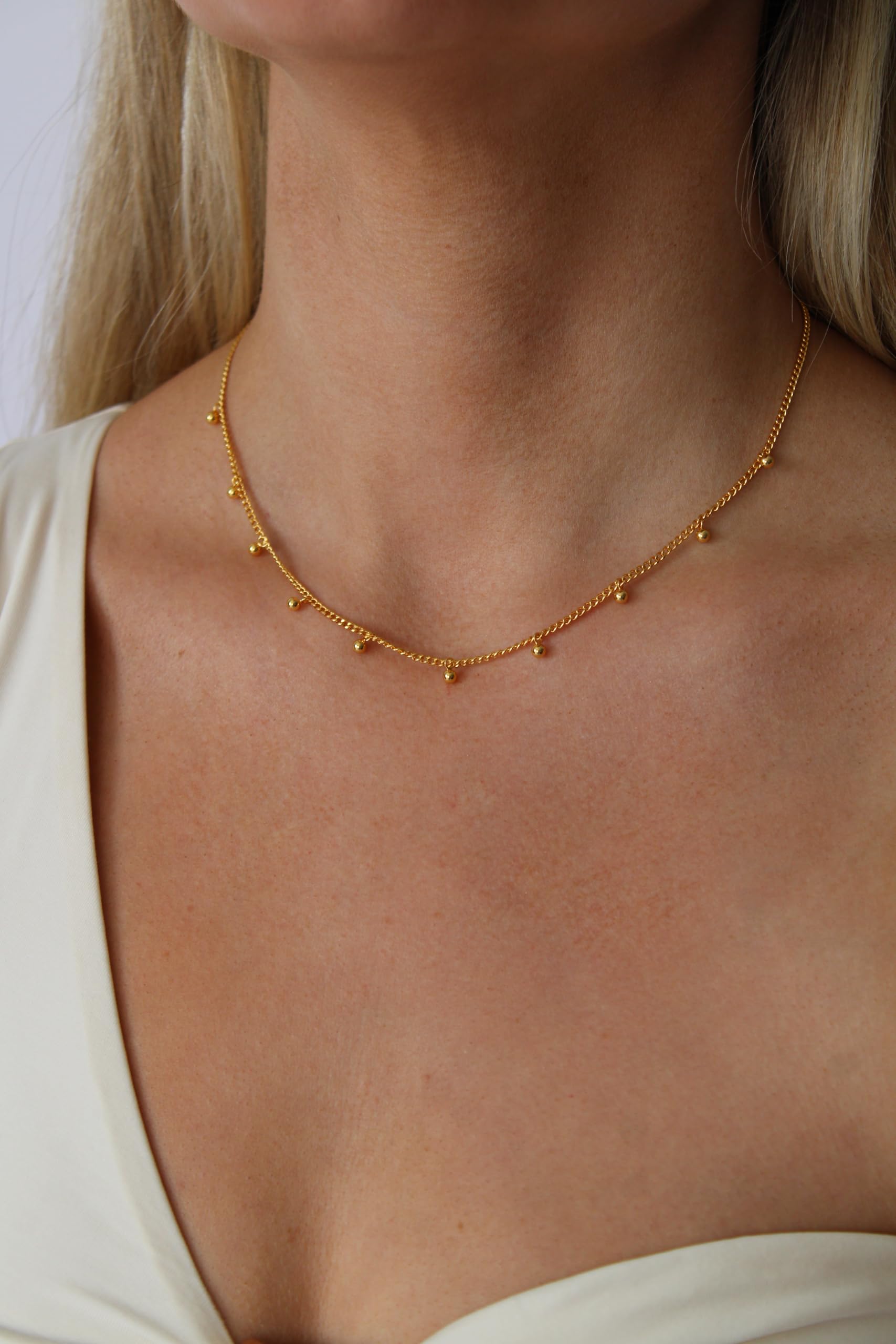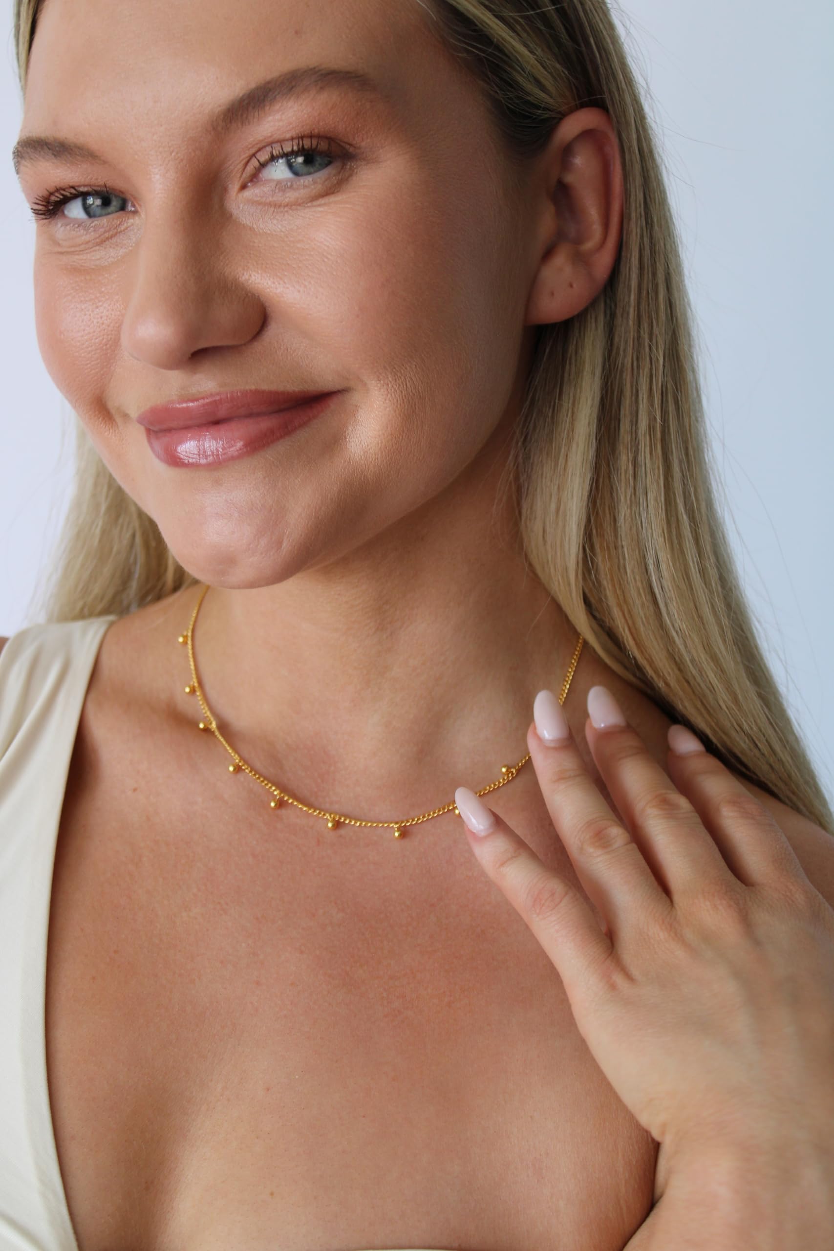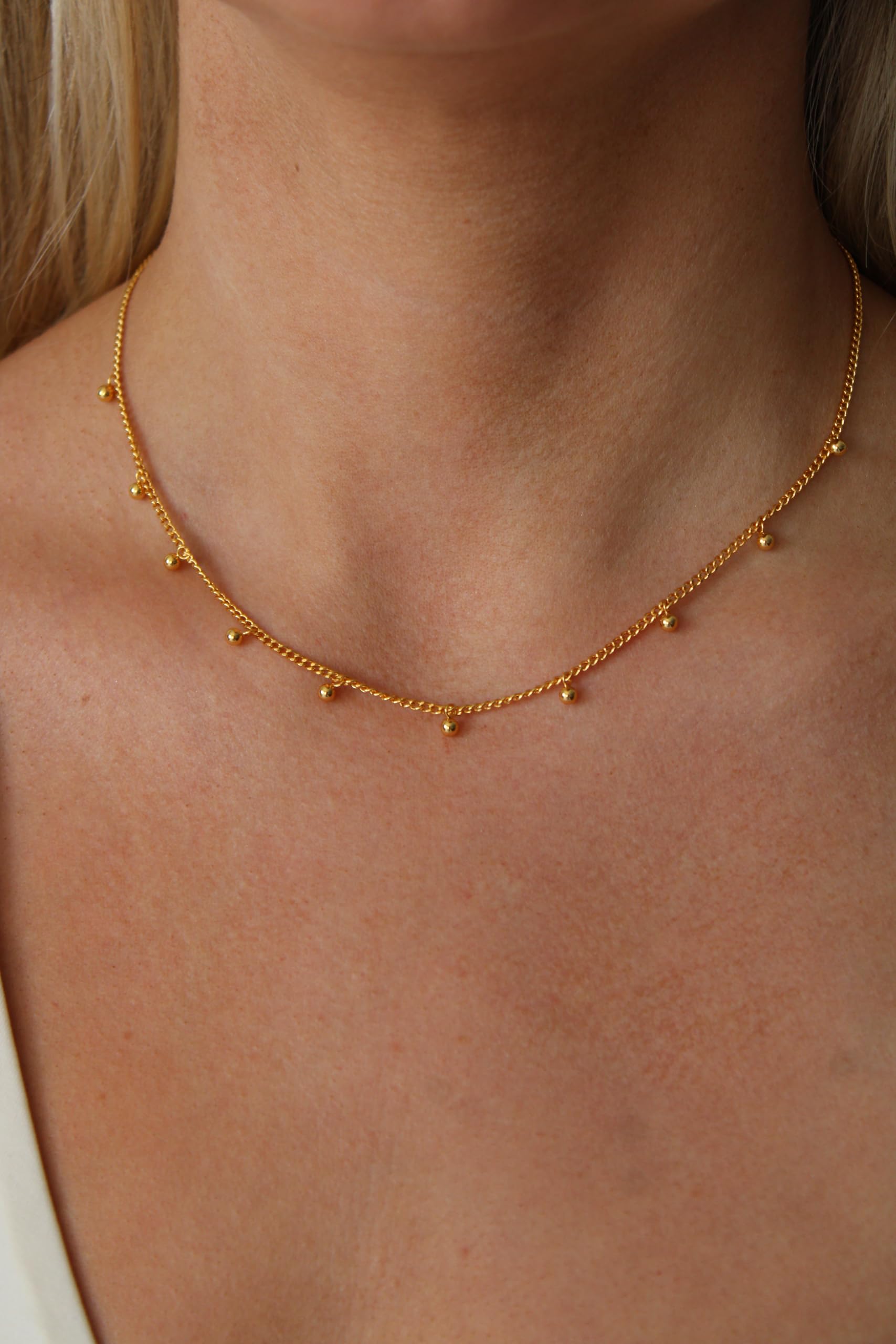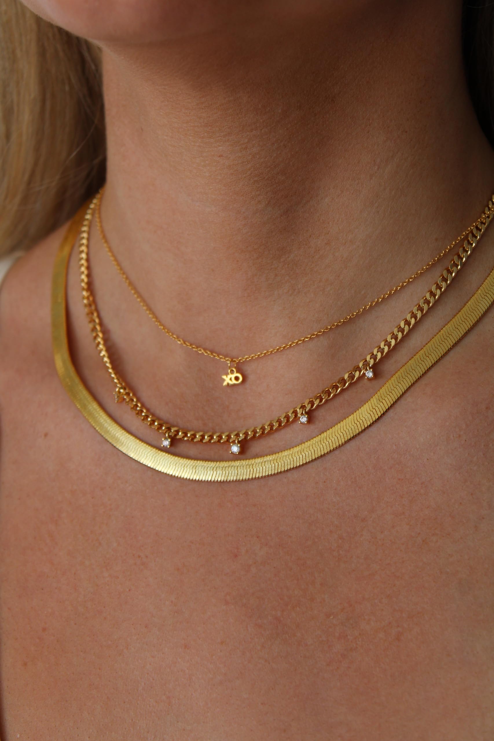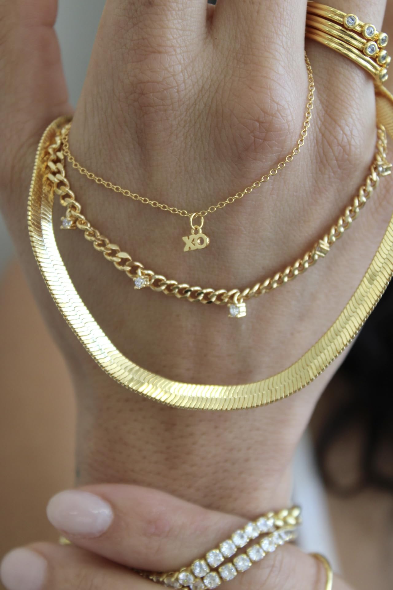 18K Gold Necklace – Adjustable Curb Chain with Cubic Zirconia Pendant, Dainty & Tarnish-Free