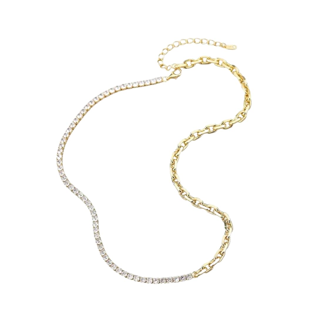 Remy Tennis Chain Necklace – 18K Gold Plated Paperclip Link with Zircon