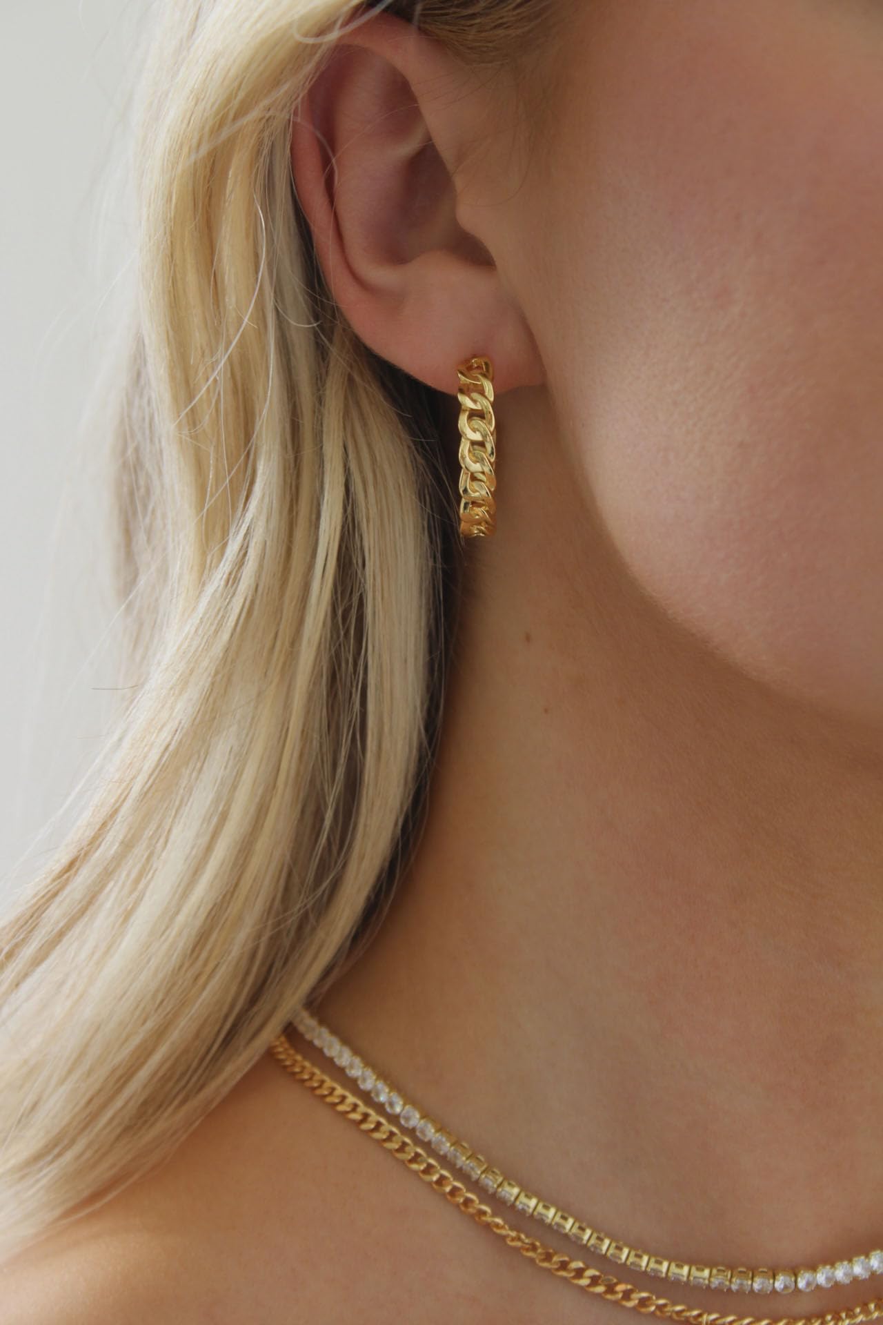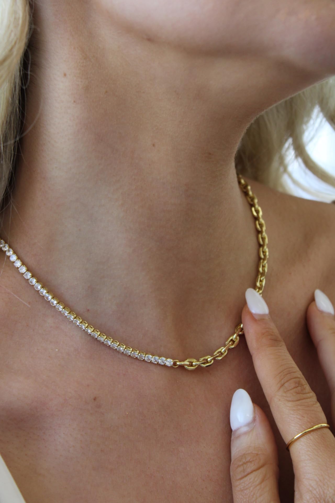 Classic tennis chain meets modern paperclip flair.
