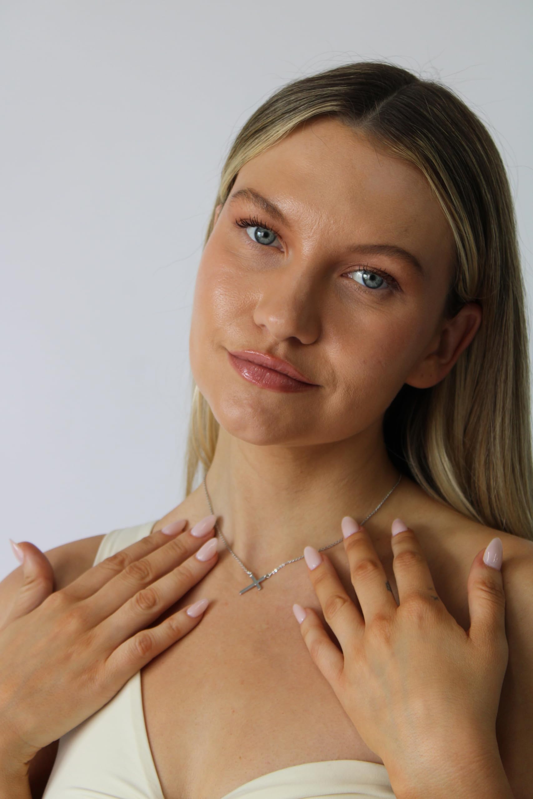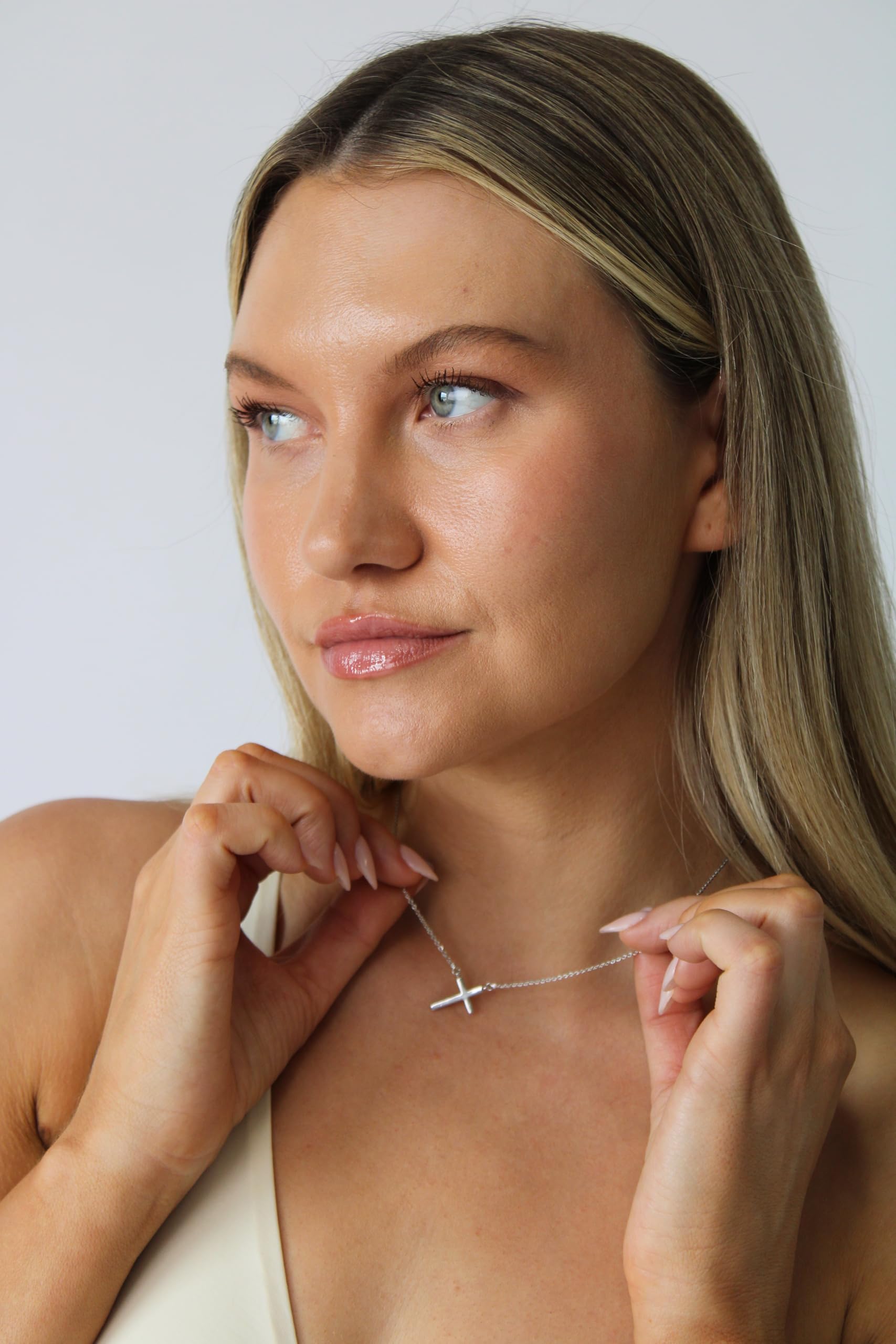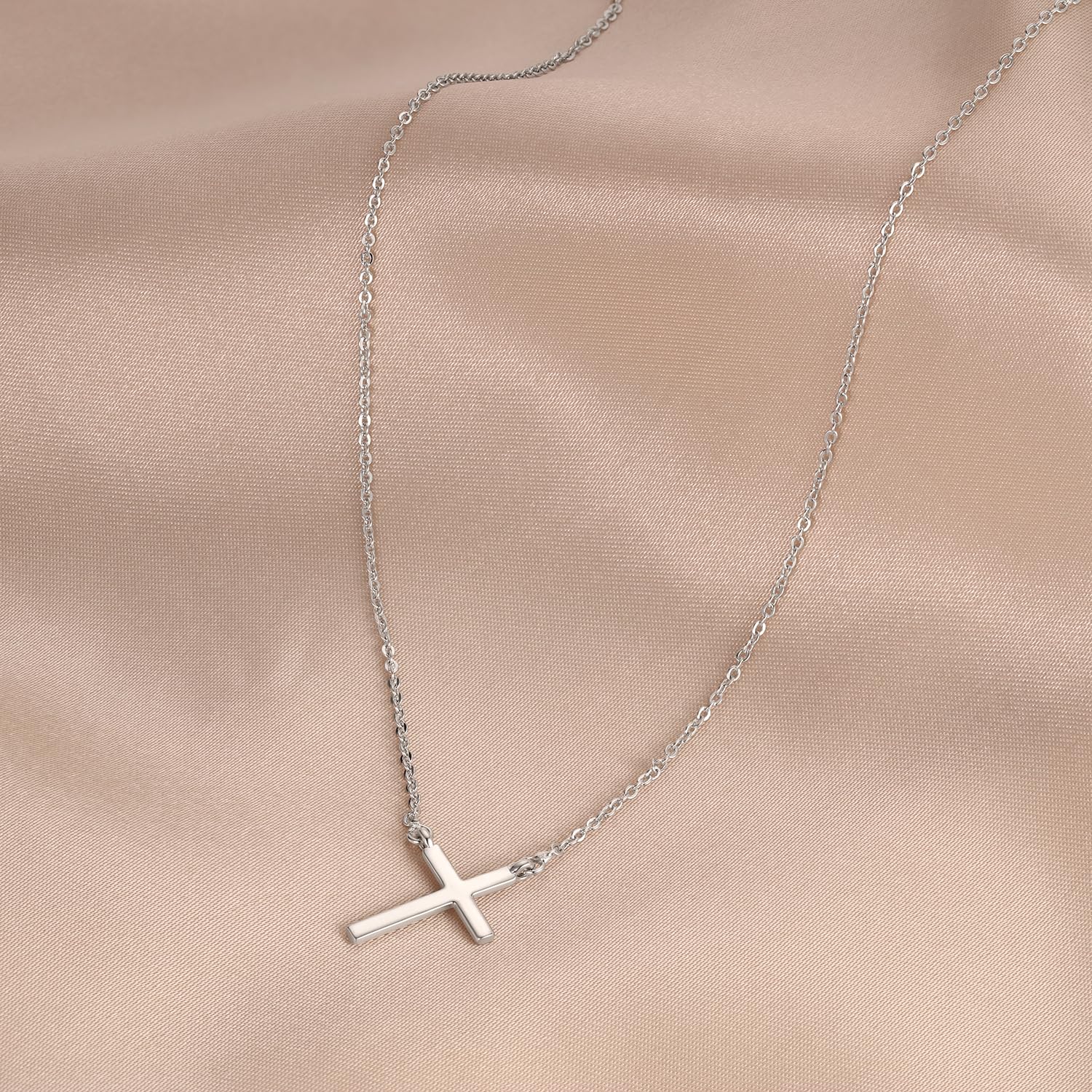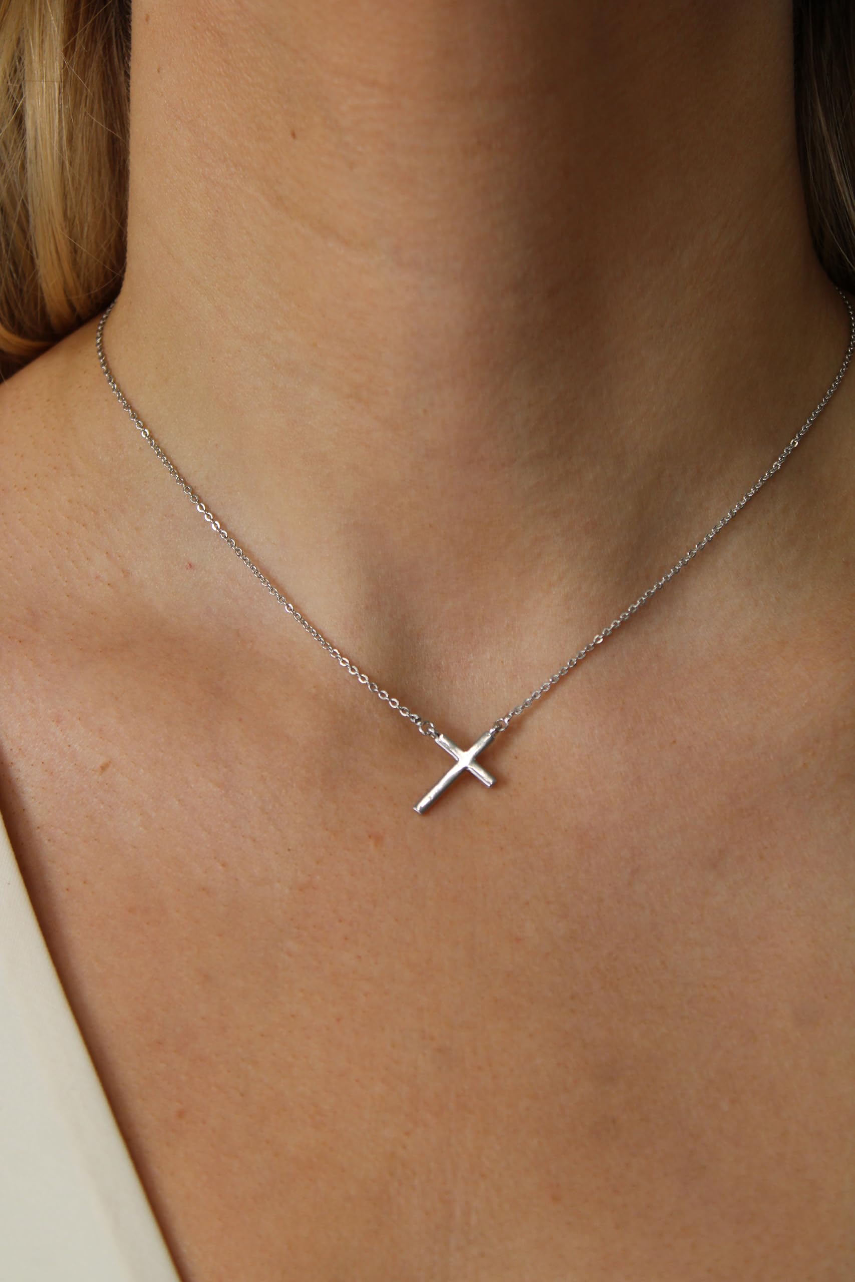 Malibu Sunday Dainty Sideways Cross Necklace – Silver Minimalist Choker