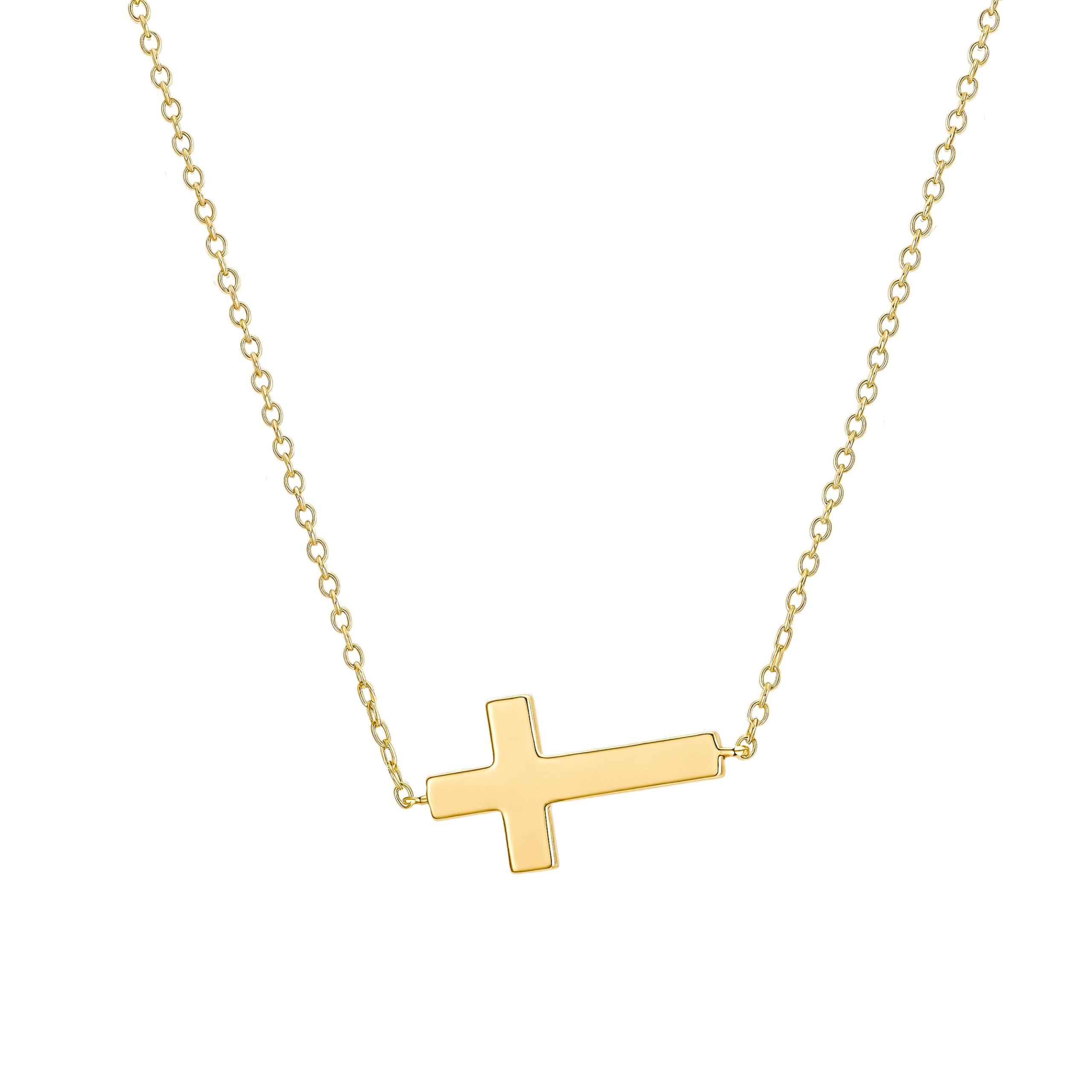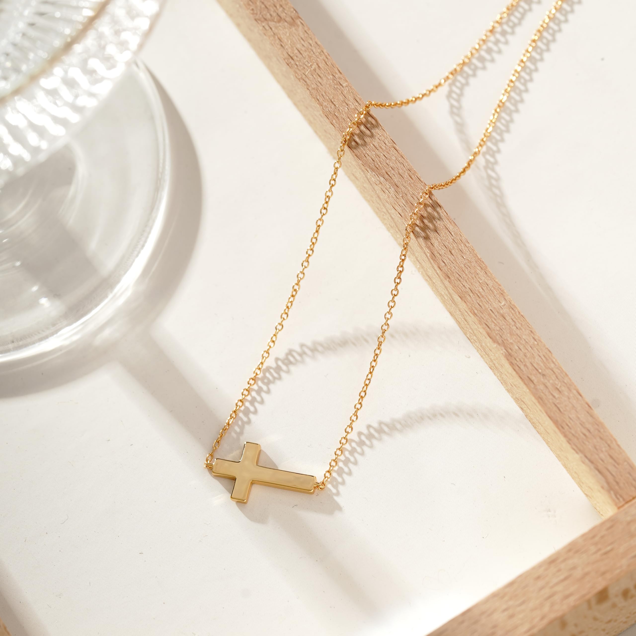 gold sideways cross necklace dainty faith pendant minimalist jewelry women’s 18k gold necklace adjustable layering hypoallergenic gift spiritual jewelry