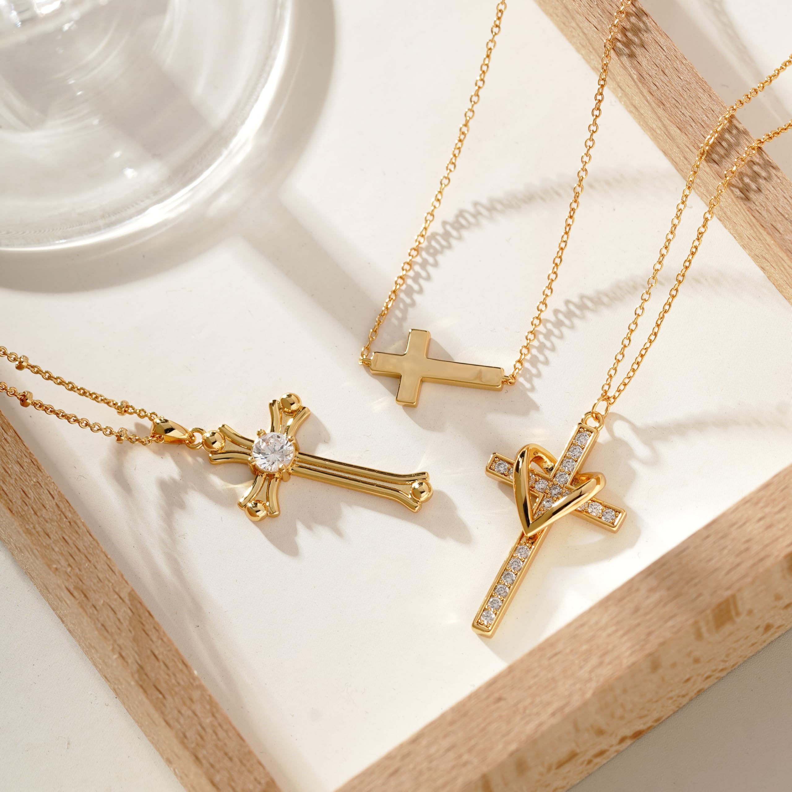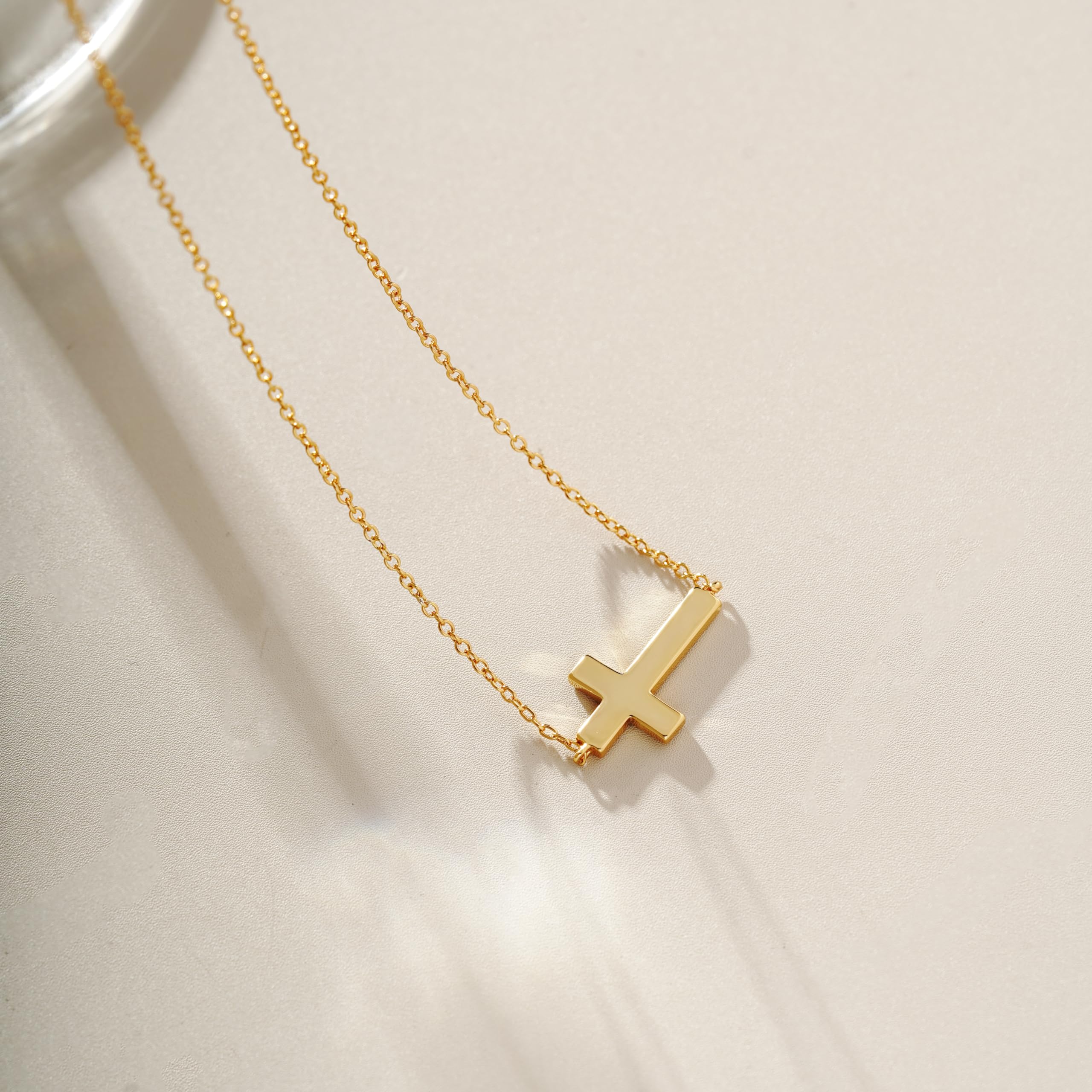Sideways Cross Necklace – 18K Gold Plated Dainty Faith Pendant