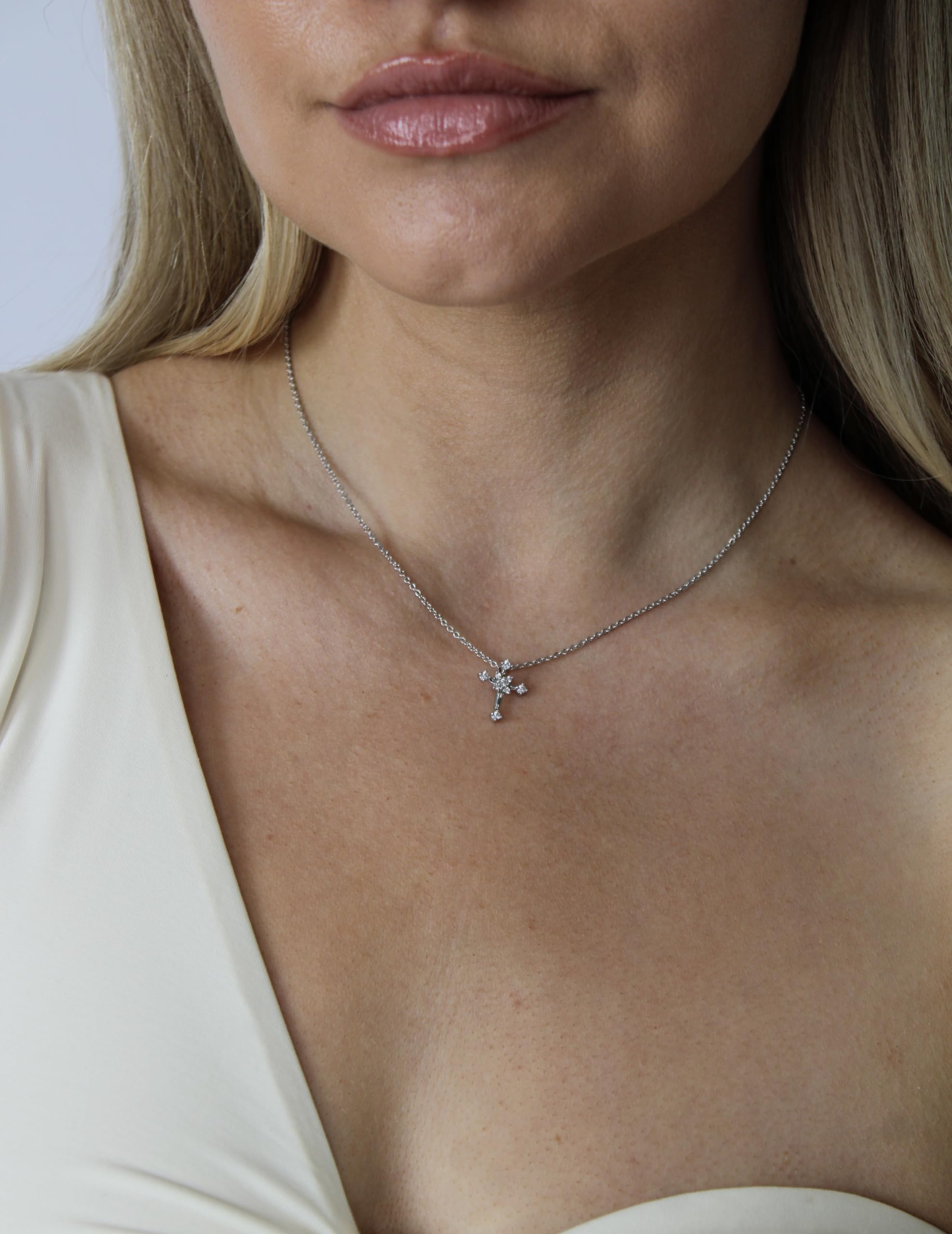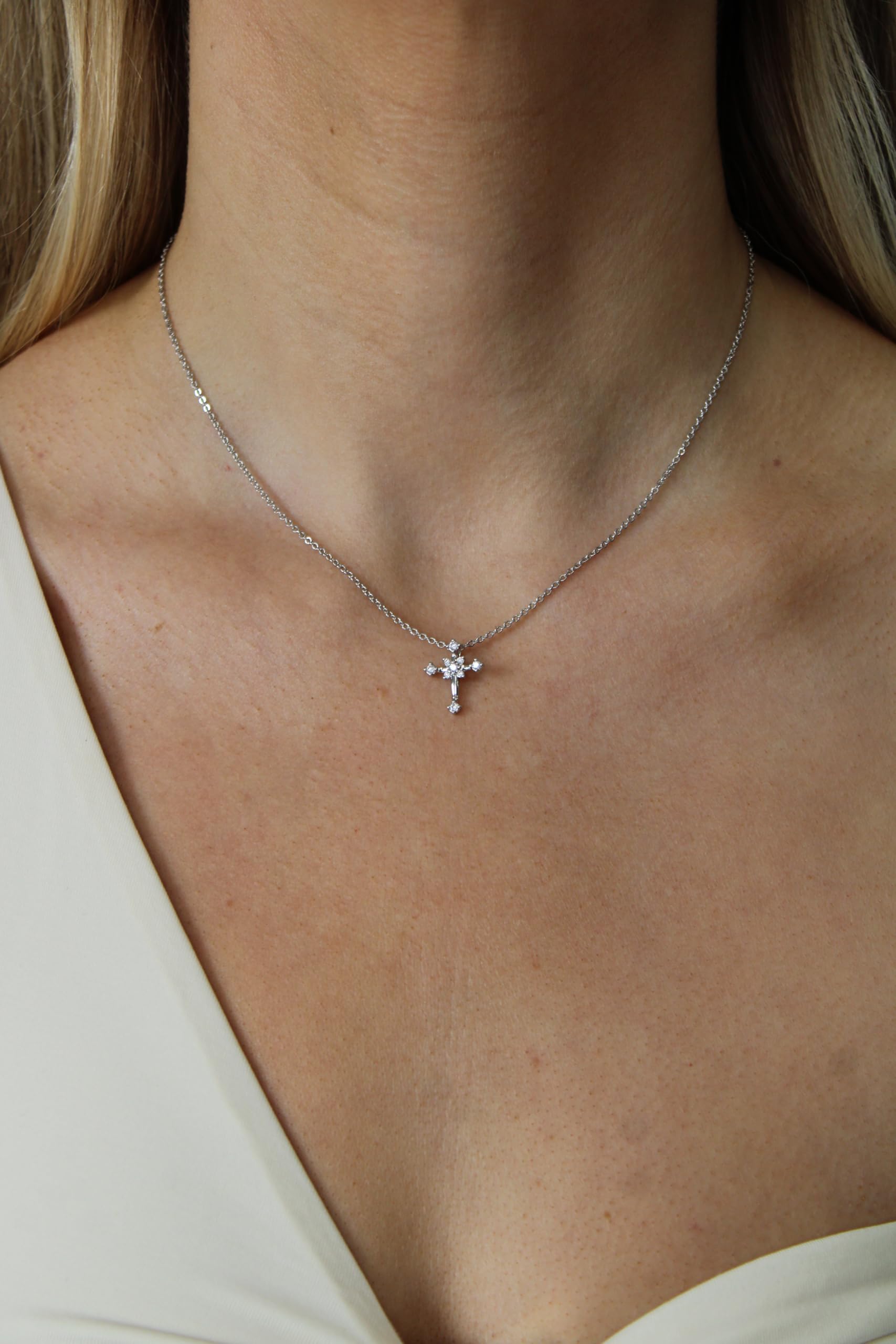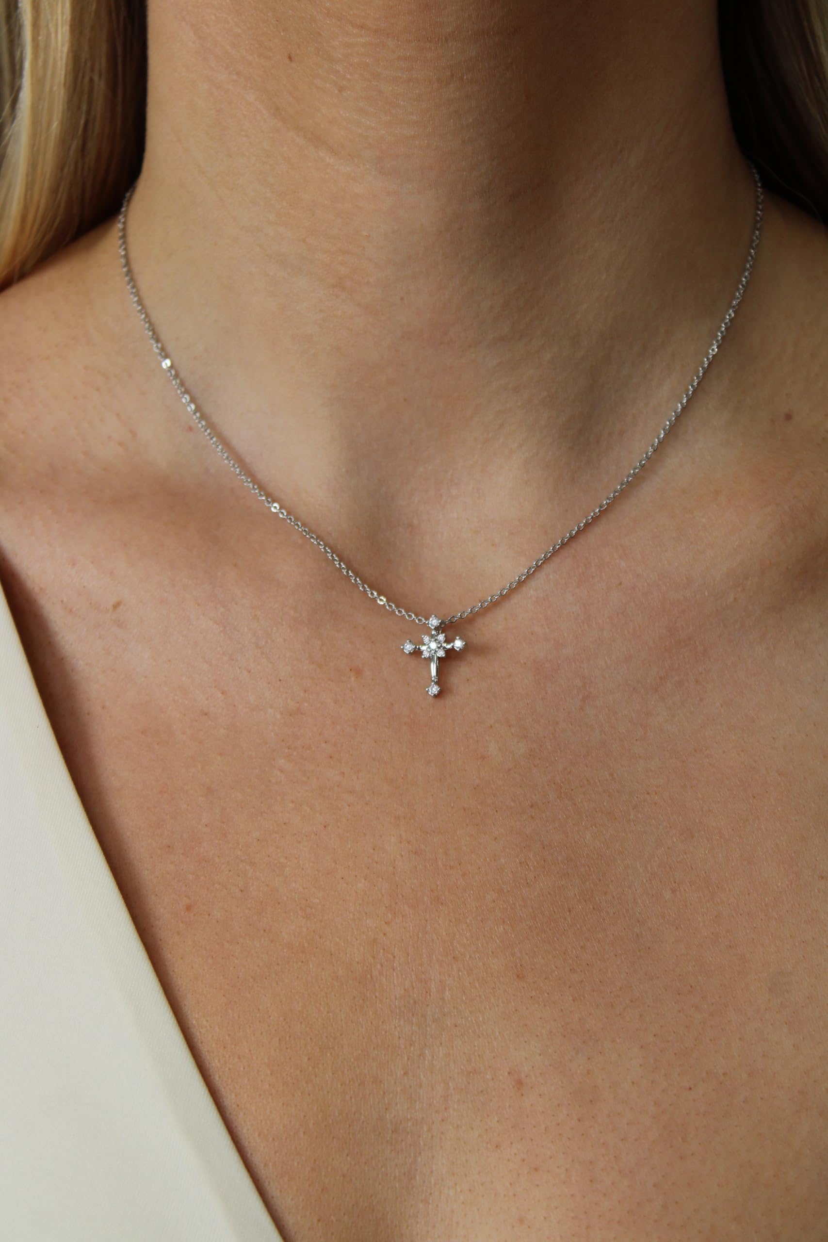 Cross Pendant Necklace – White Gold Plated with Pave Cubic Zirconia, Elegant Everyday Jewelry