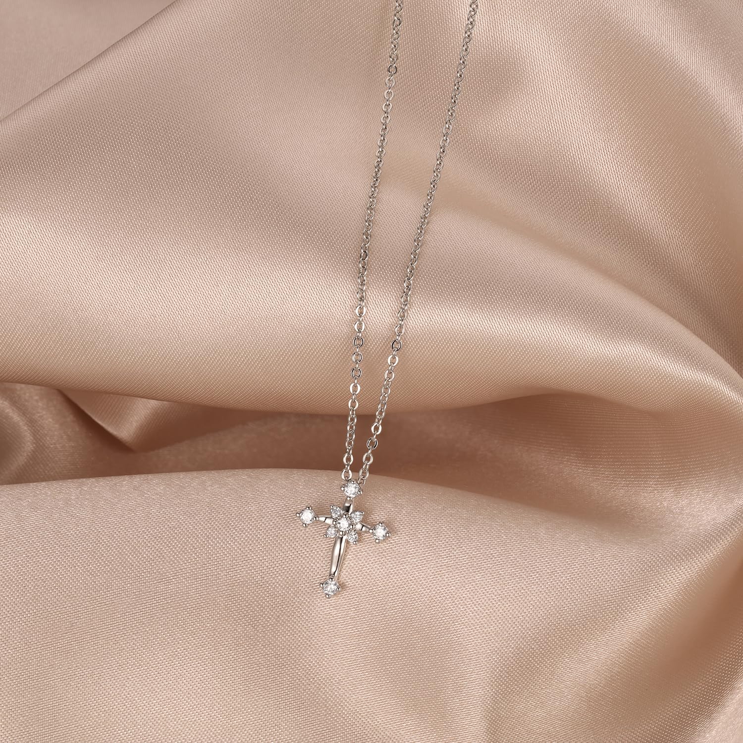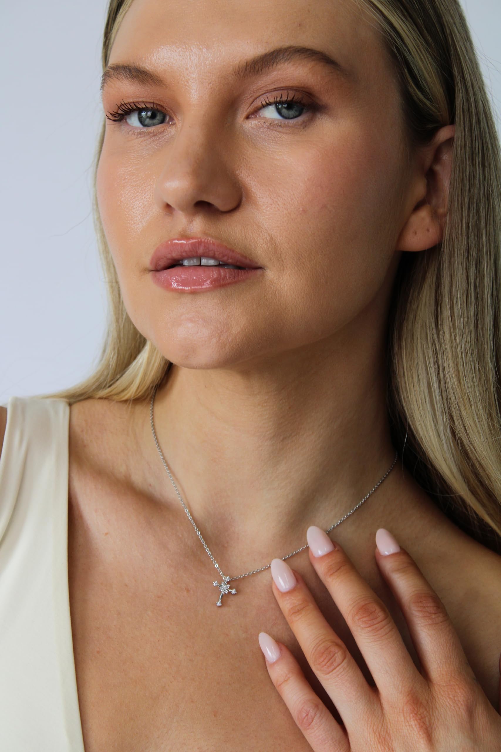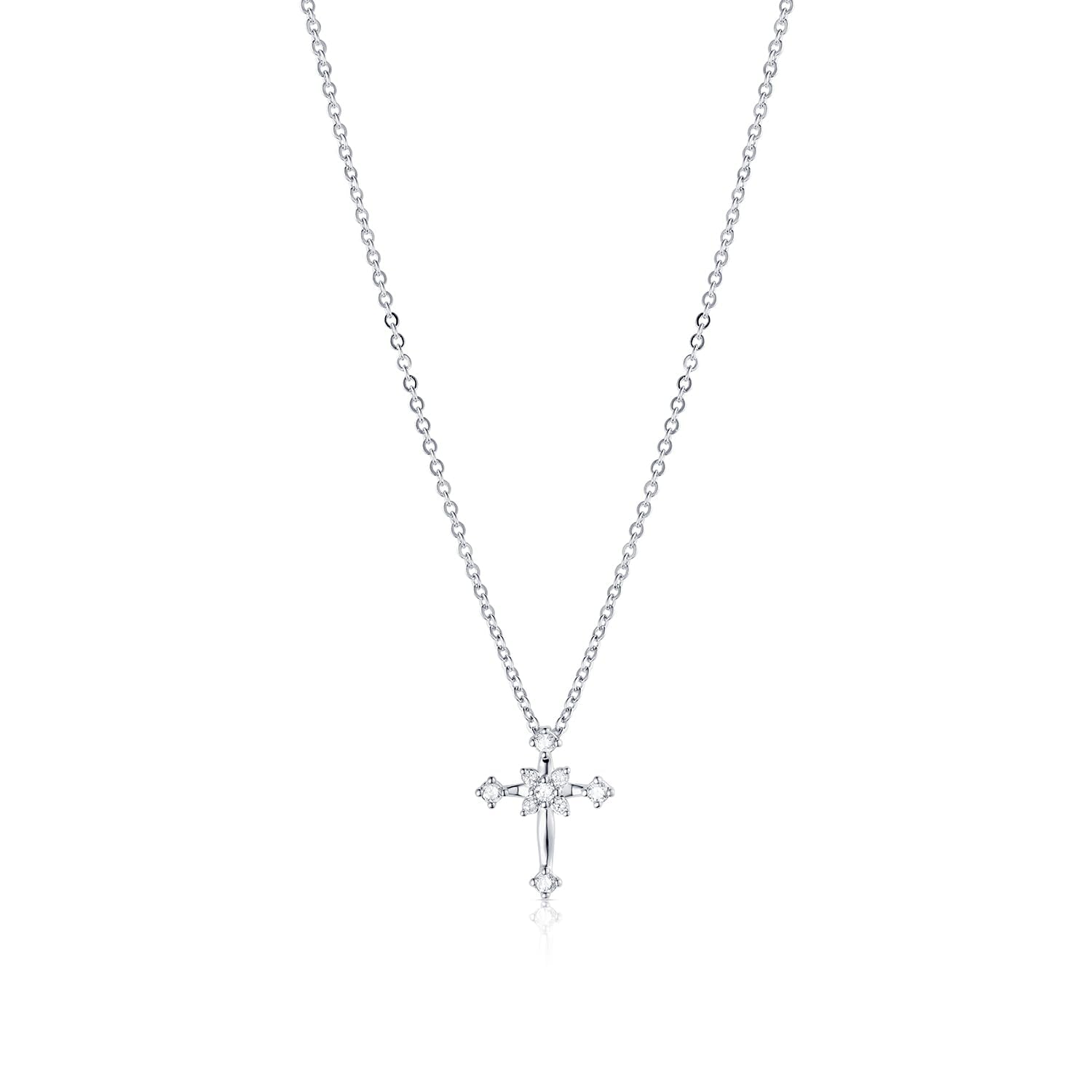 Cross Pendant Necklace – White Gold Plated with Pave Cubic Zirconia, Elegant Everyday Jewelry