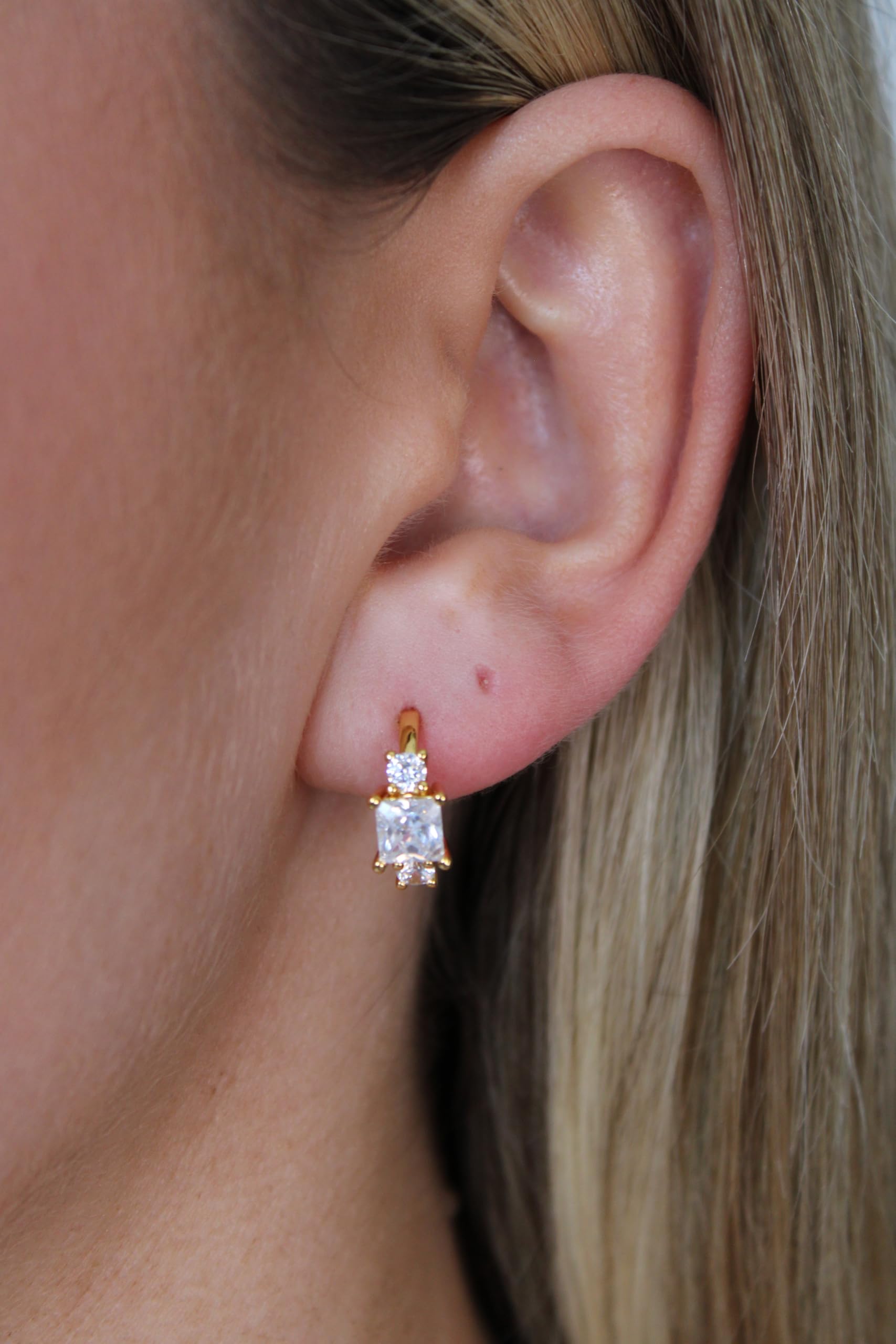 chunky gold hoops sparkly earrings 18k gold plated white zircon hypoallergenic non tarnish women’s jewelry gift