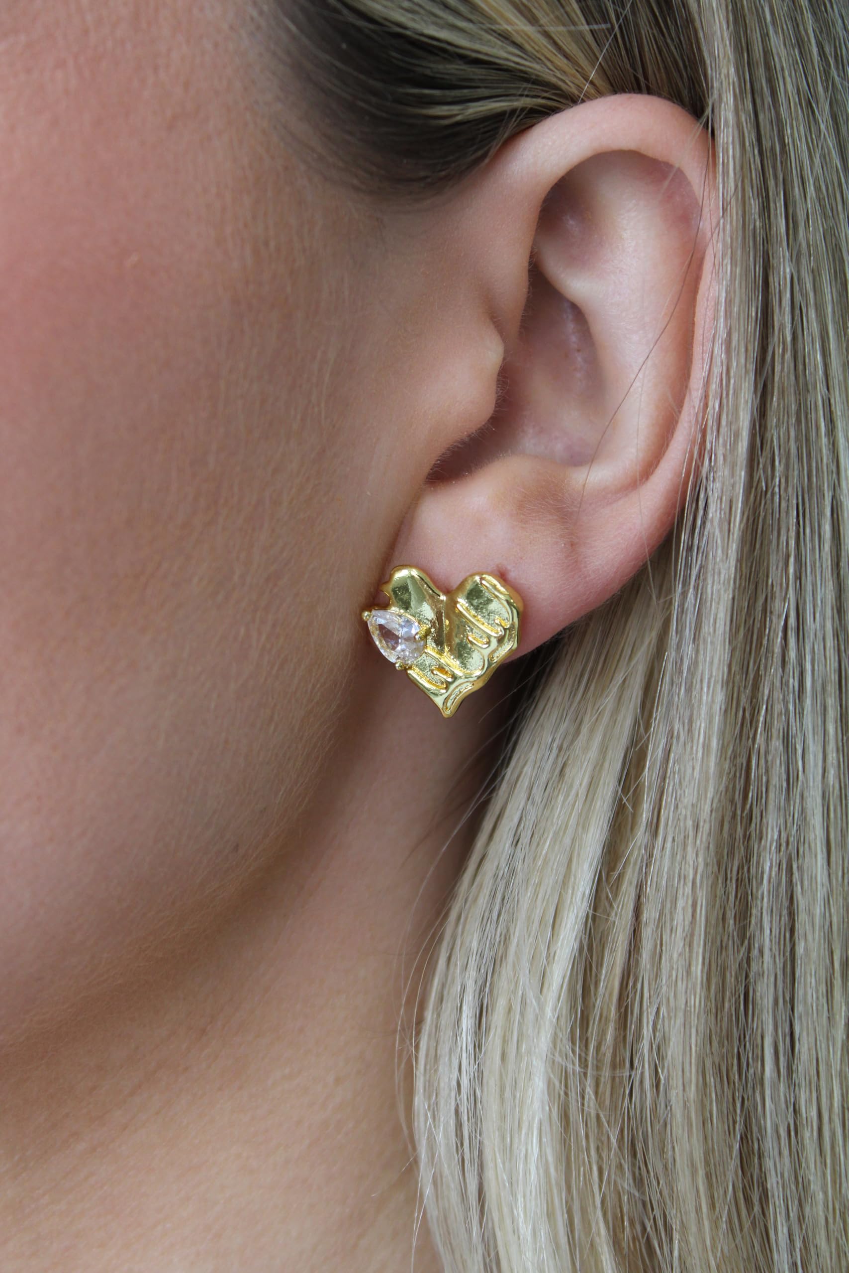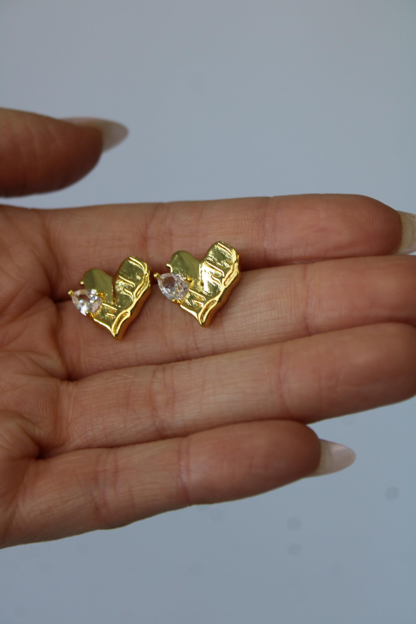 Chunky Heart Earrings – 18K Gold Plated Bold Statement Earrings for Women