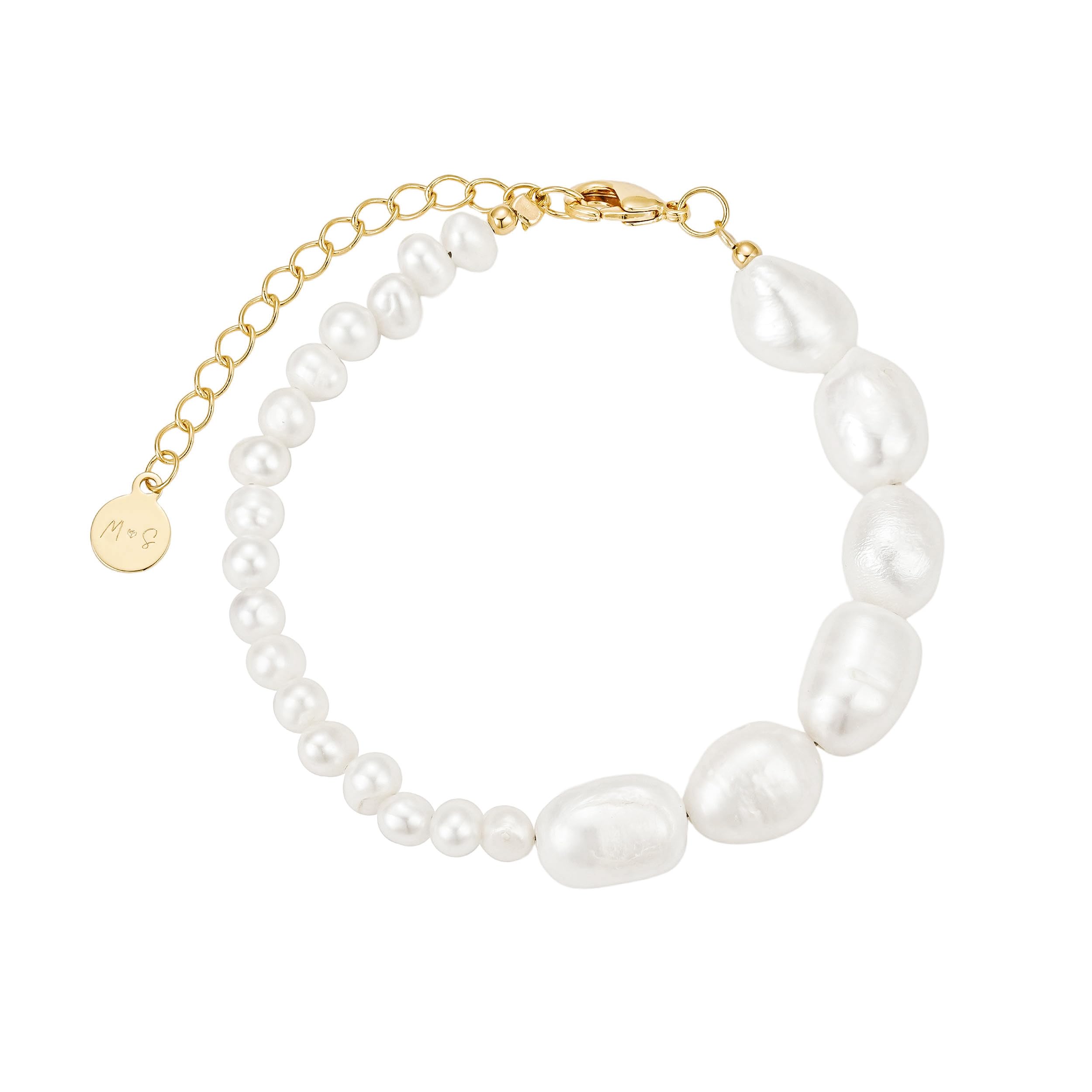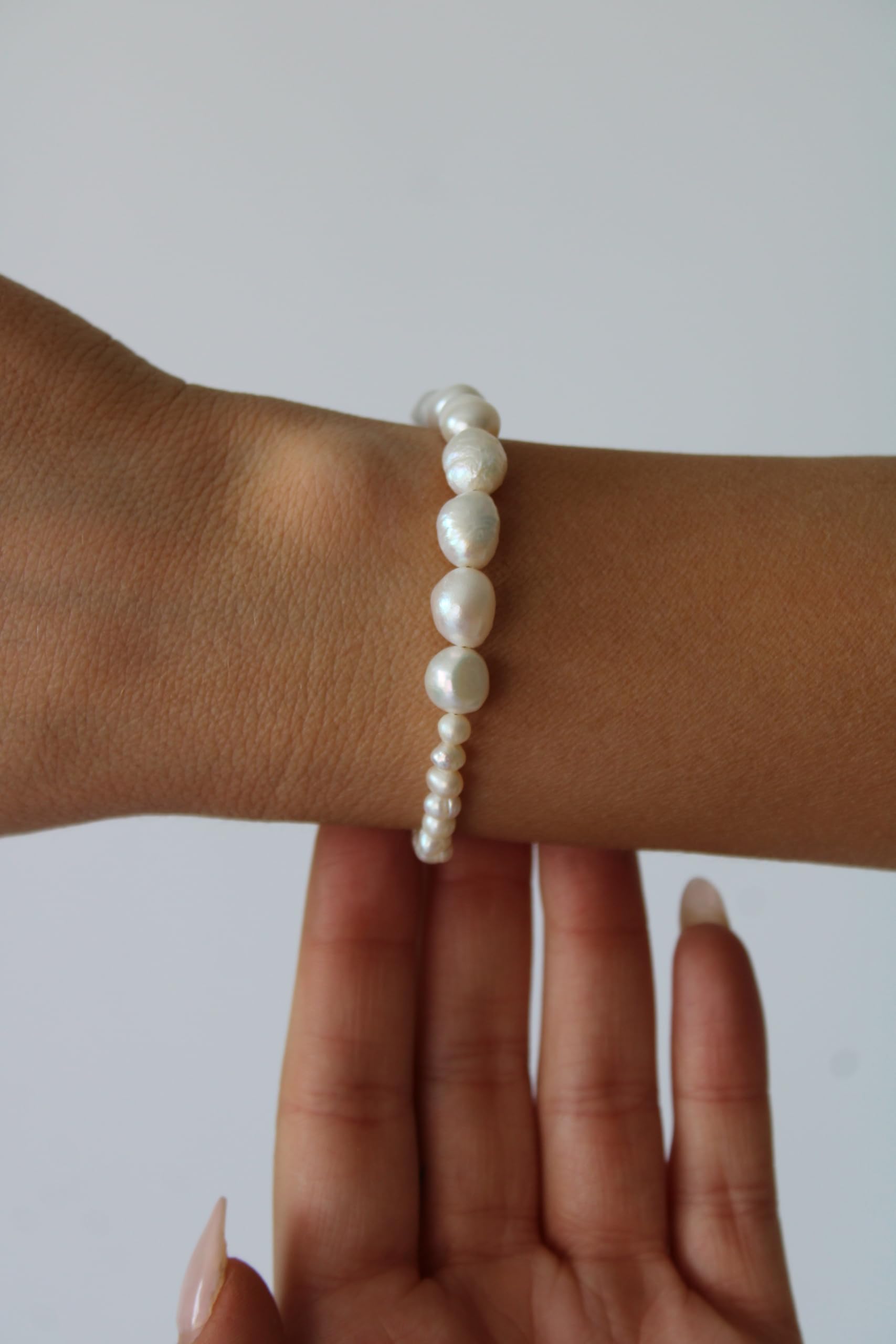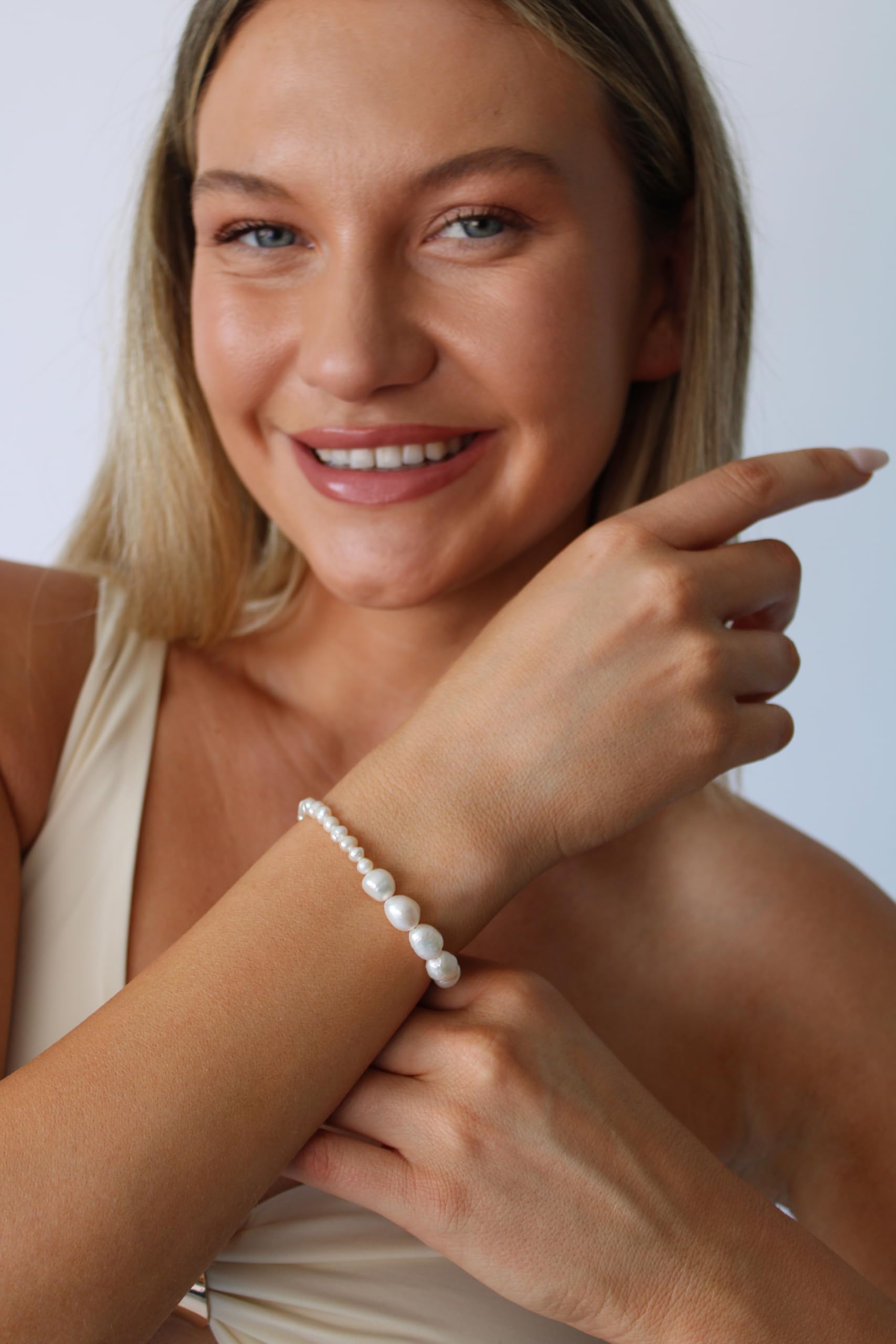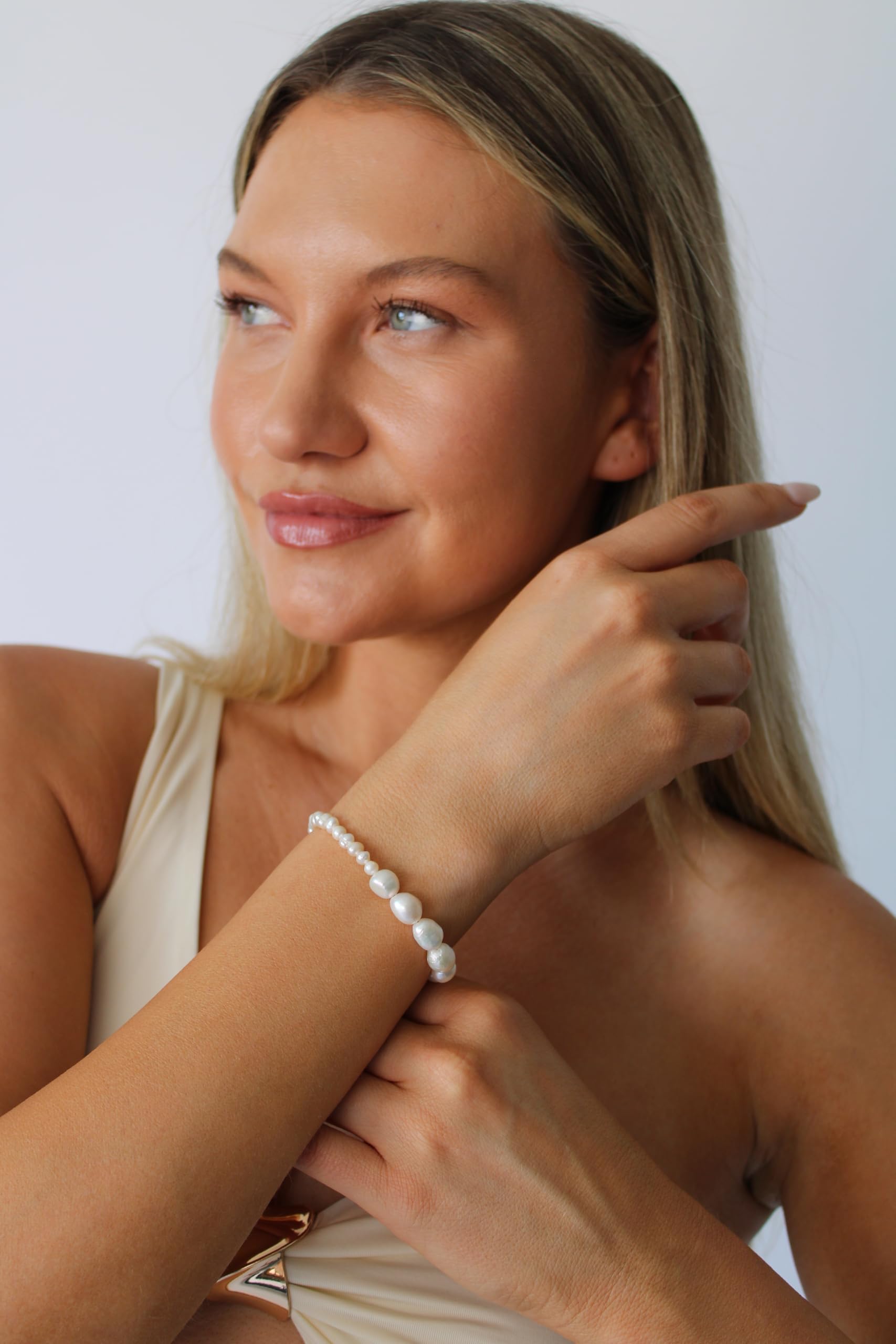 Hand-strung with a mix of organically shaped chunky pearls and delicate accents, each bracelet is unique—just like the woman who wears it.