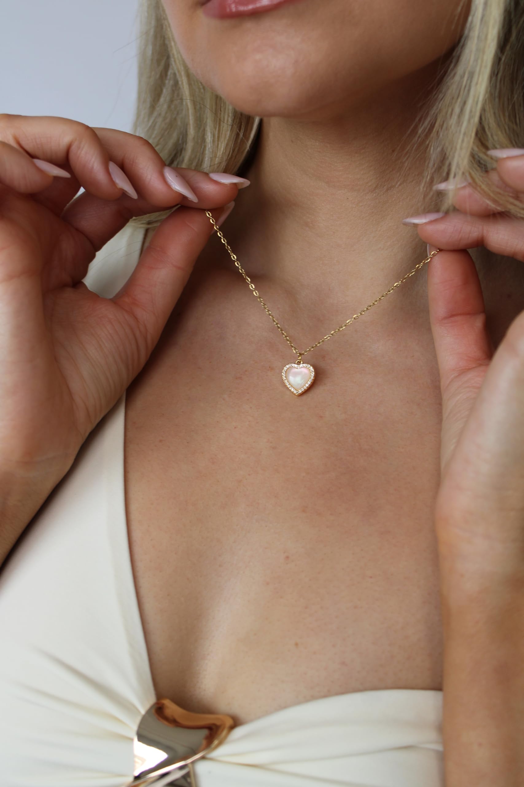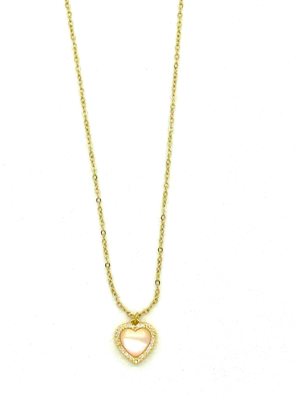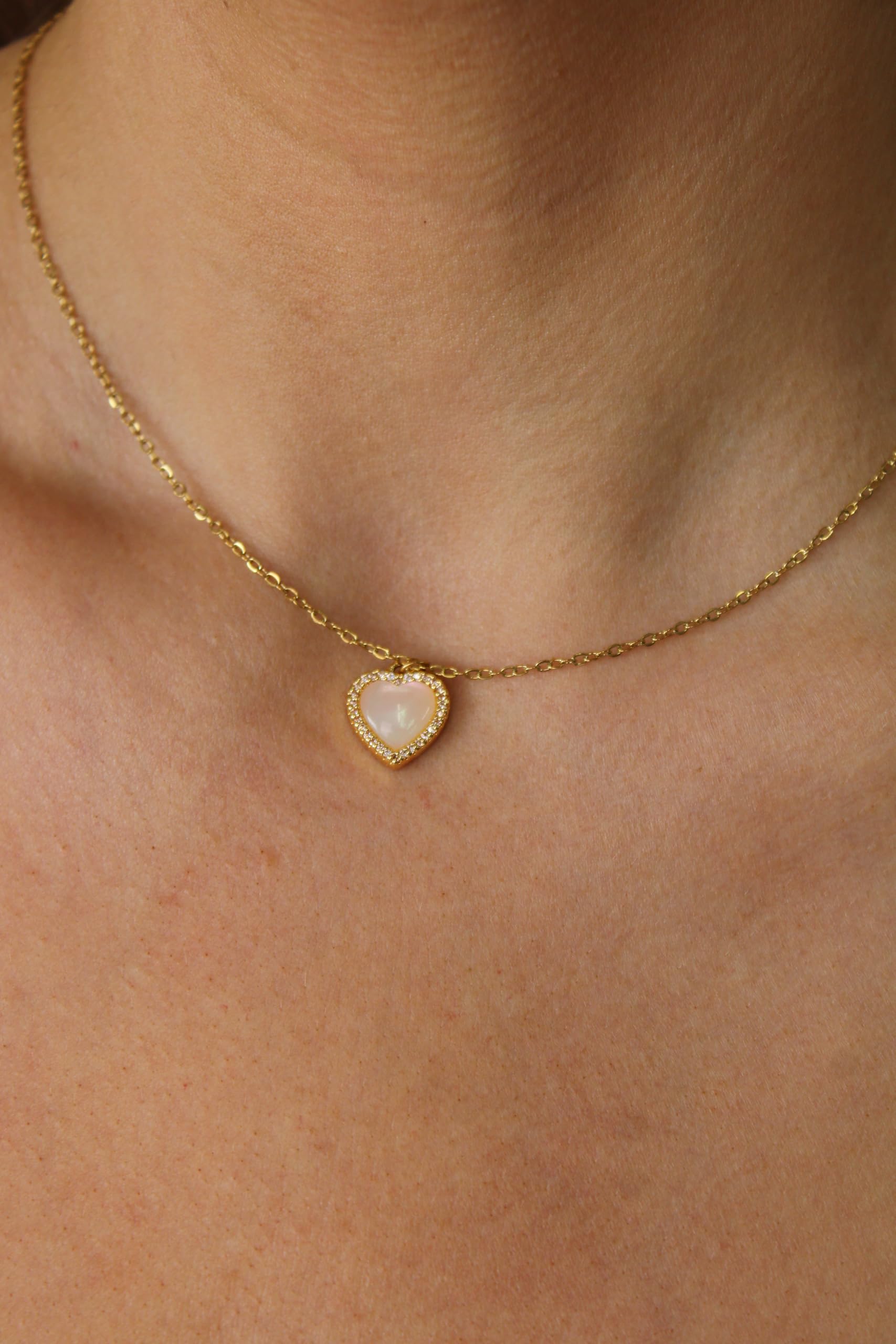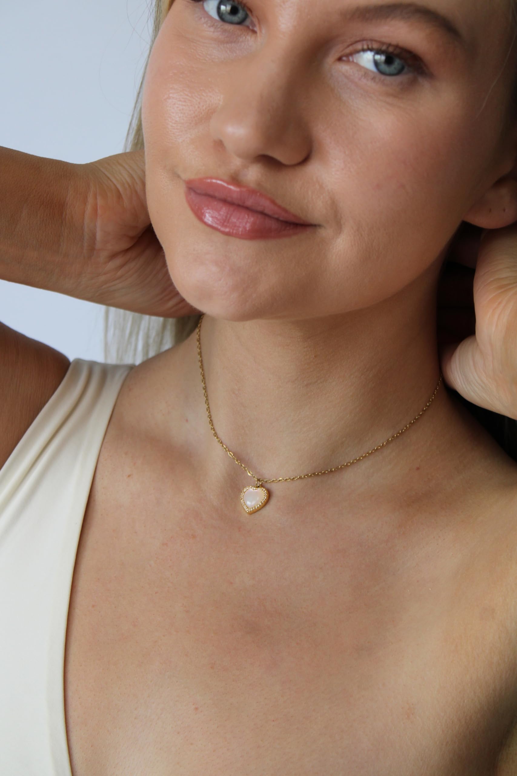 Dainty Pink Opal Heart Necklace – Gold Plated Pendant Jewelry for Women, Romantic Gift