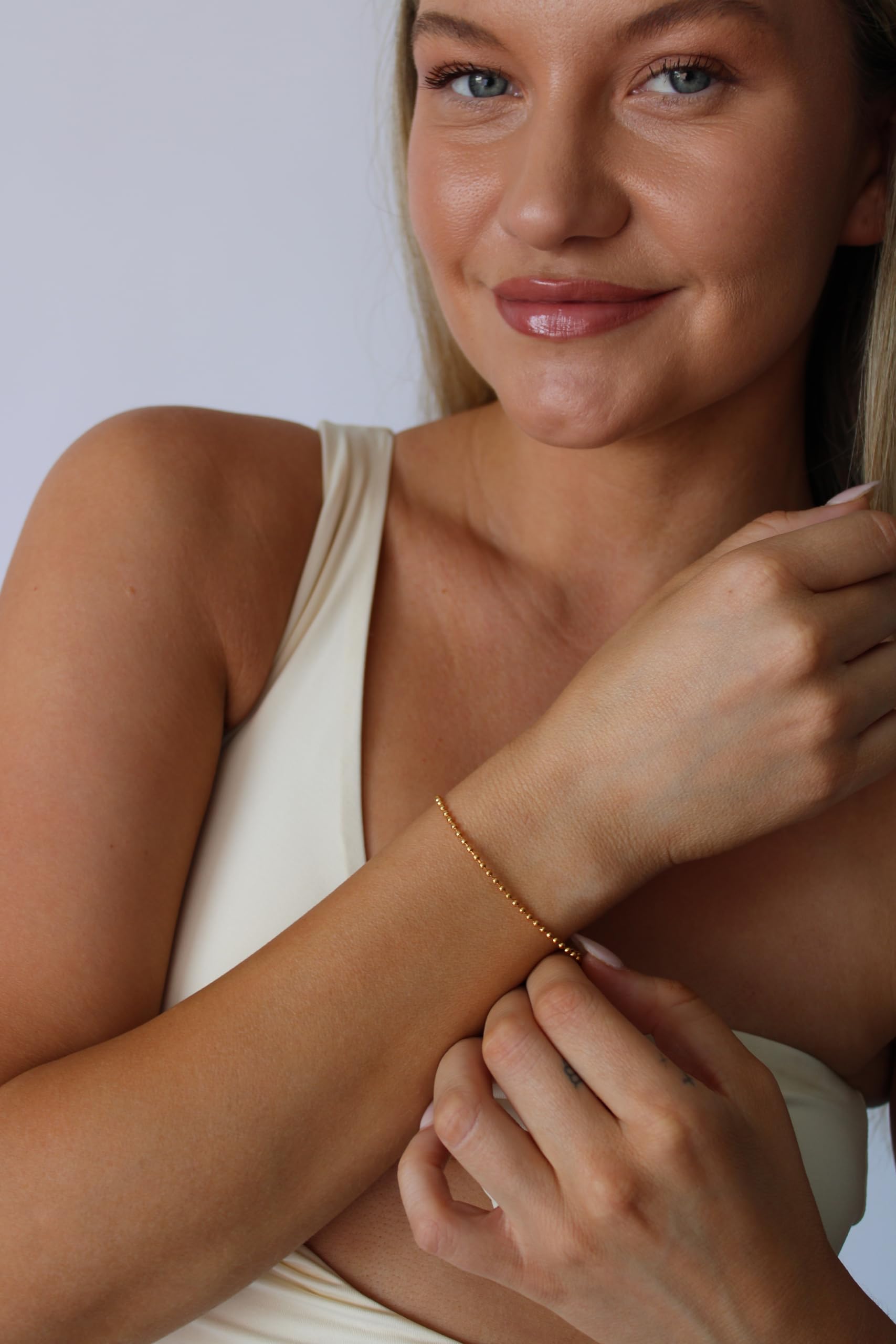 The Taylor Gold Bracelet Set by Malibu Sunday features delicately polished 2mm gold-plated beads designed for effortless stacking or solo wear. Crafted from 18K gold plated brass, these bracelets blend lasting shine with lightweight comfort and durability. Adjustable to fit any wrist, they offer a perfect balance of minimalist charm and everyday luxury. Hypoallergenic and tarnish-resistant, the Taylor set is ideal for sensitive skin and daily wear. Whether as a thoughtful gift or a personal treat, these bracelets add subtle sophistication to every look.