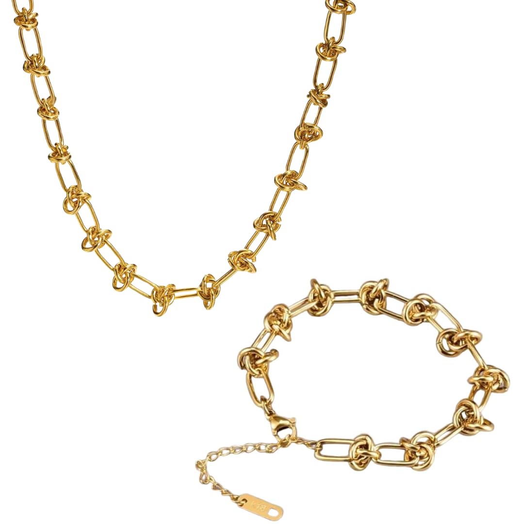 Gold Paperclip Chain Set – 18K Plated Necklace & Bracelet for Women