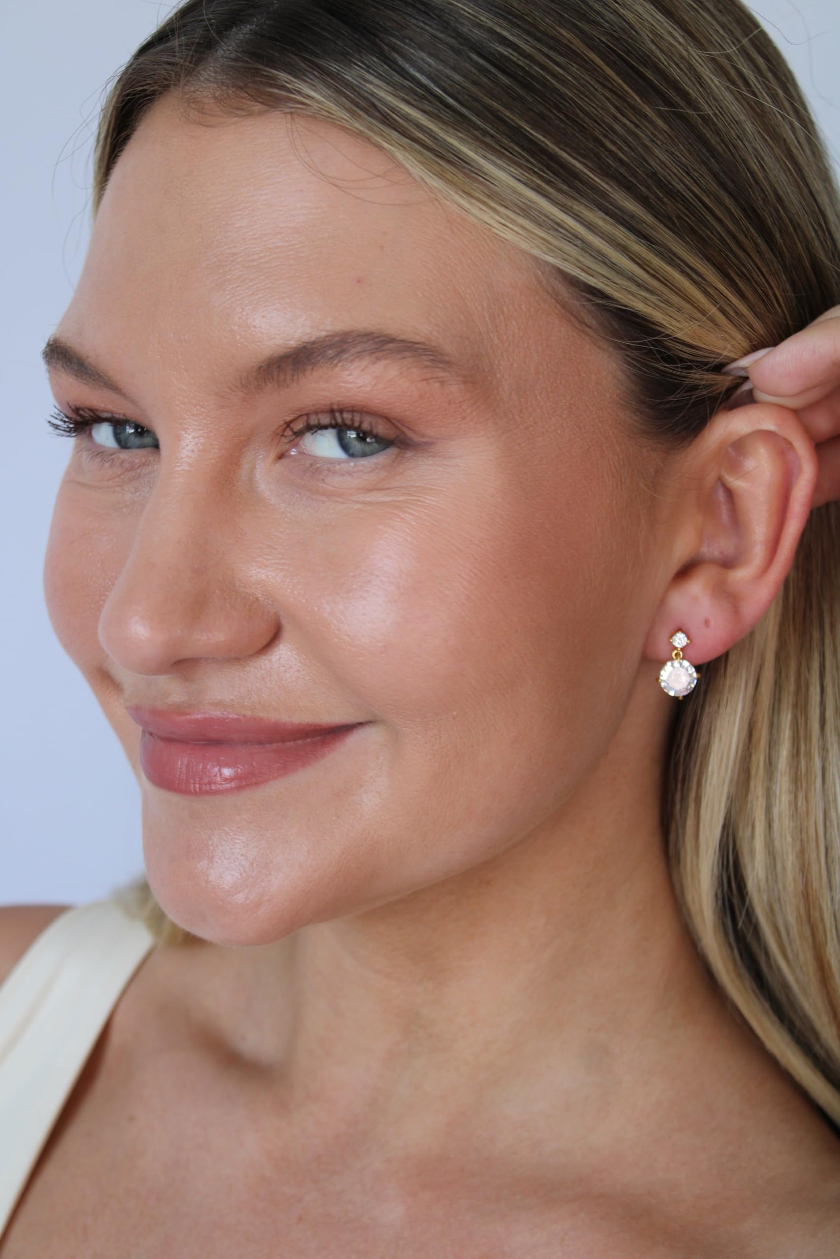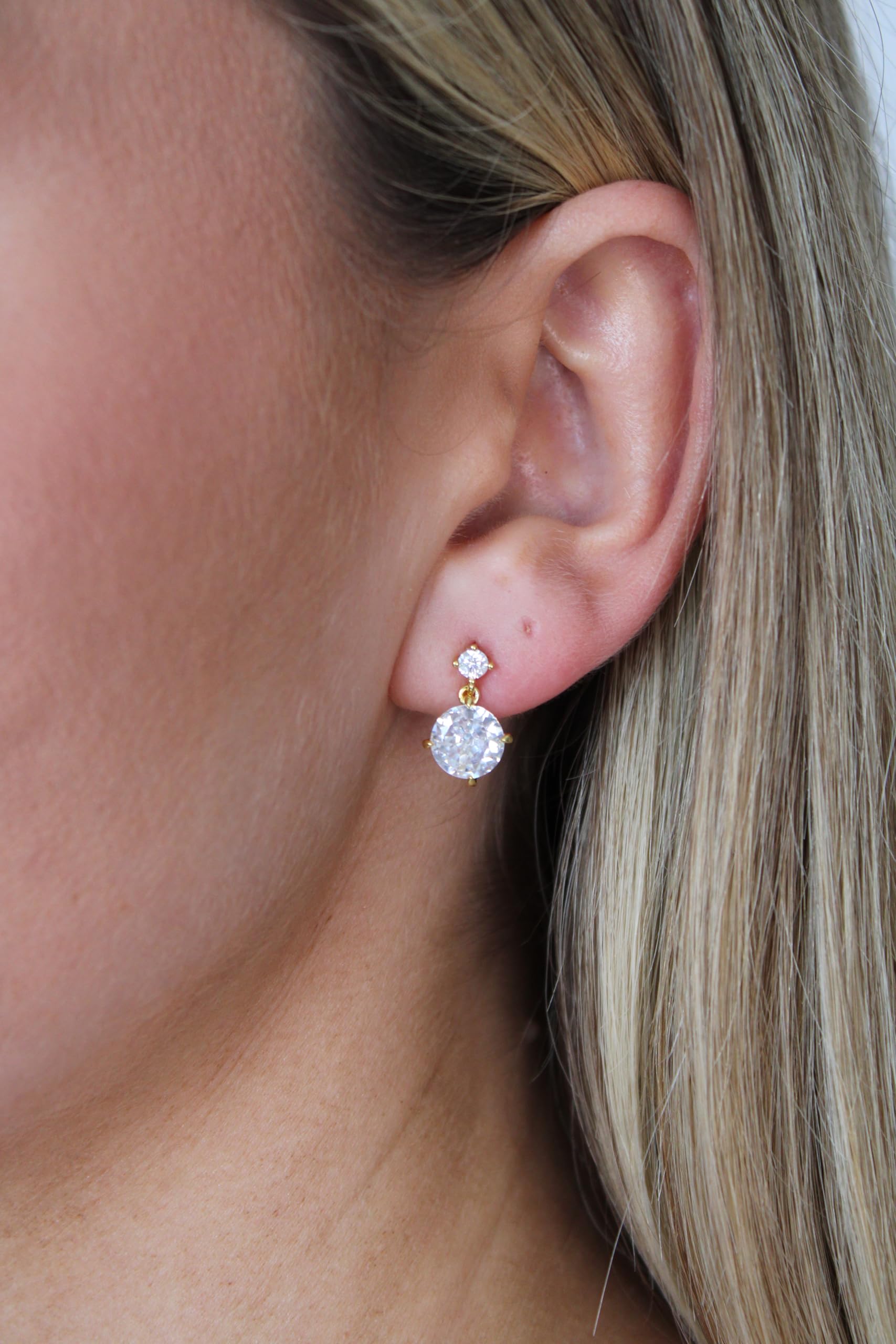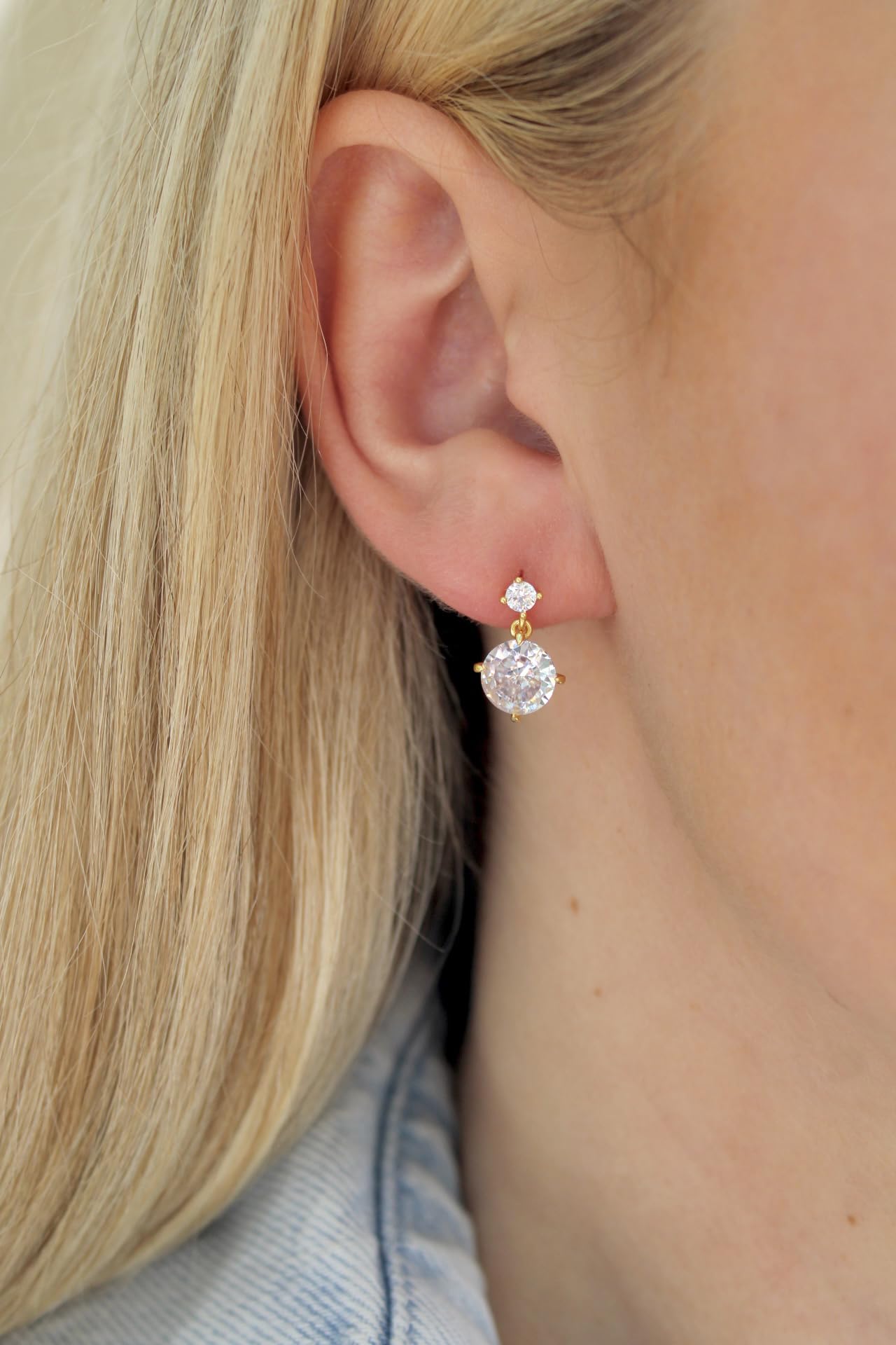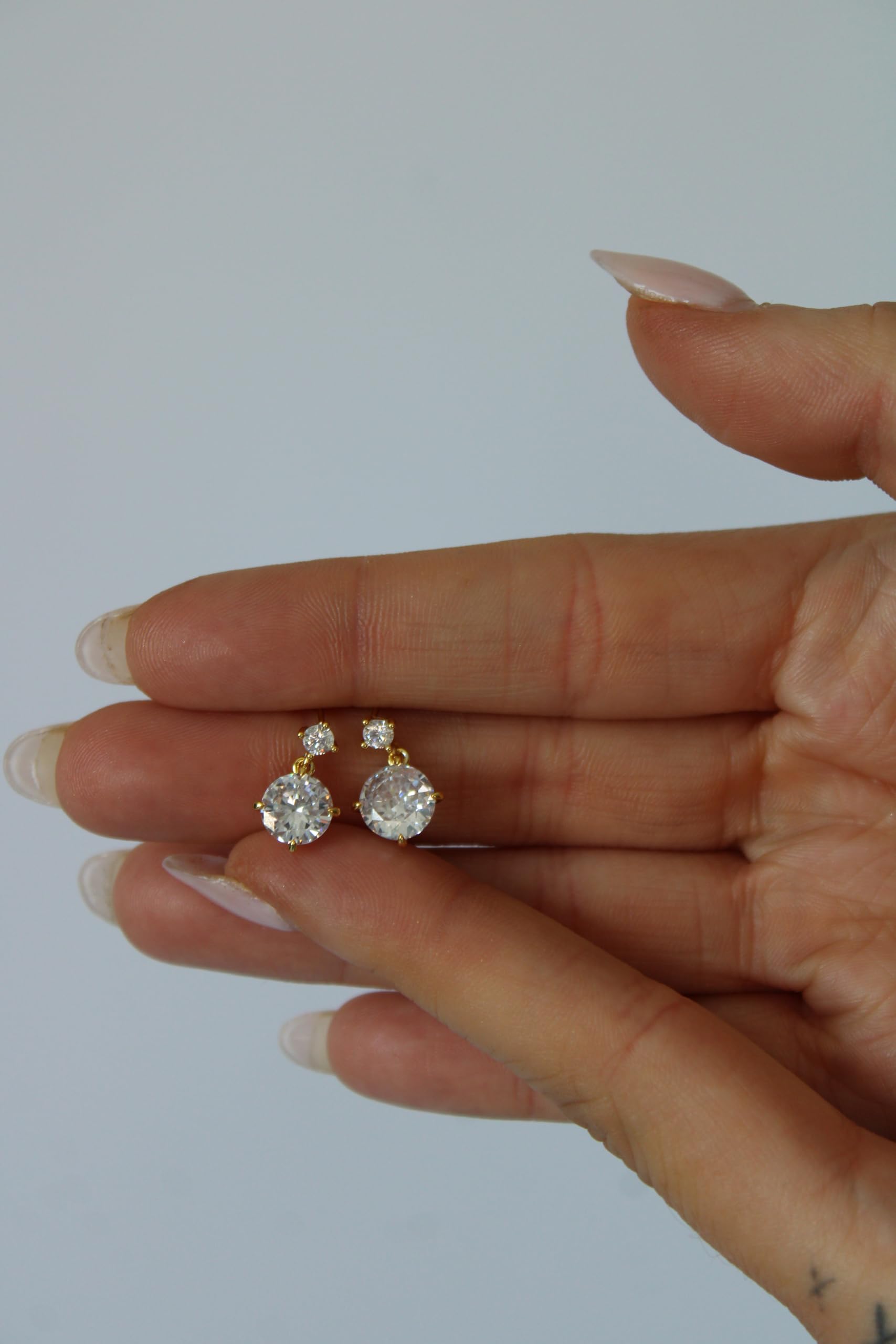 Bold doesn’t have to mean heavy. The Luella Dangle Stud Earrings feature a striking oversized design balanced by a lightweight feel—perfect for all-day glam. A sparkling white zircon sits at the top, anchored by a smooth, chunky gold drop for high-impact elegance. Whether you're heading to dinner, date night, or just dressing up a tee, these earrings turn heads without weighing you down.